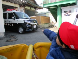 出かける前に、「電車見に行こう」 「パトカー見られるかな」と保育士が言うと、