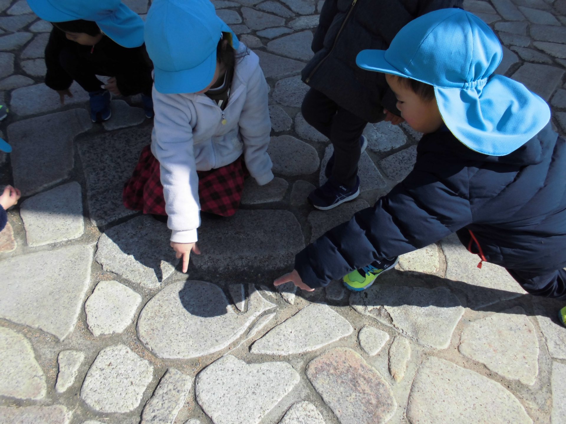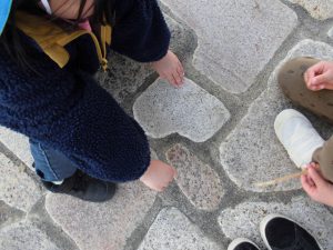 ある子が、「クジラがいるんだよ!」と言って石畳にいるクジラを教えてくれました。