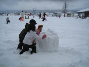 ・「大きい雪だるまを作ると重くてびっくり!!」