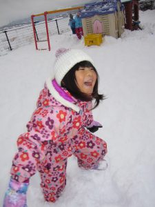「おいしょおいしょ!大きい雪だるまにするぞ〜!!」
