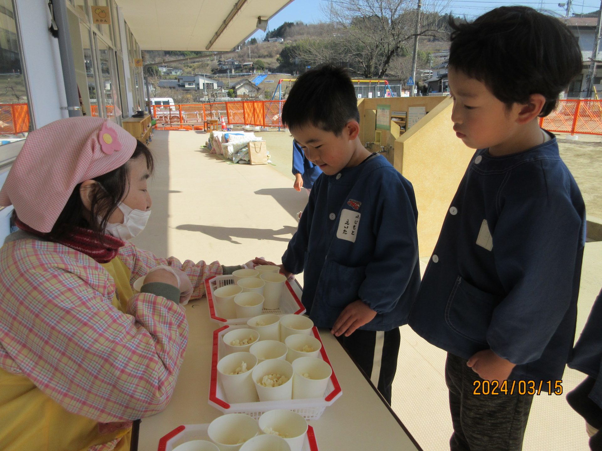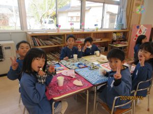 年中さんが年長さんの部屋に来て「ありがとうございました。」とお礼を行ってくれました。