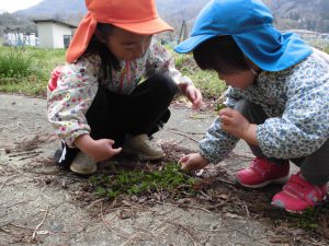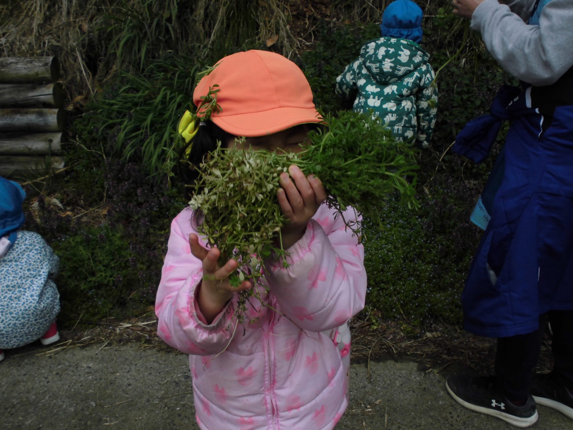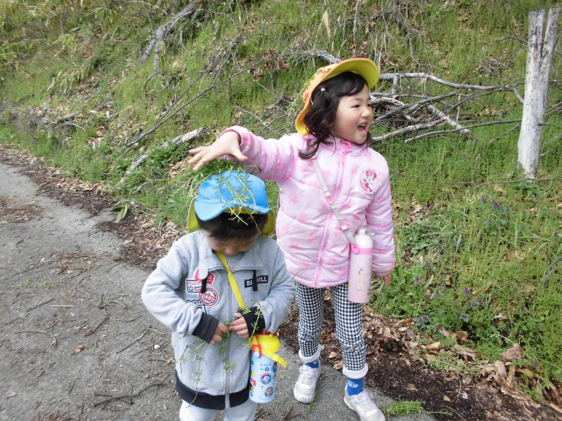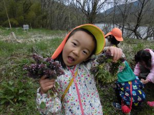 ヒメオドリコソウを年少さんに教える姿もありました。
