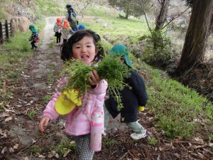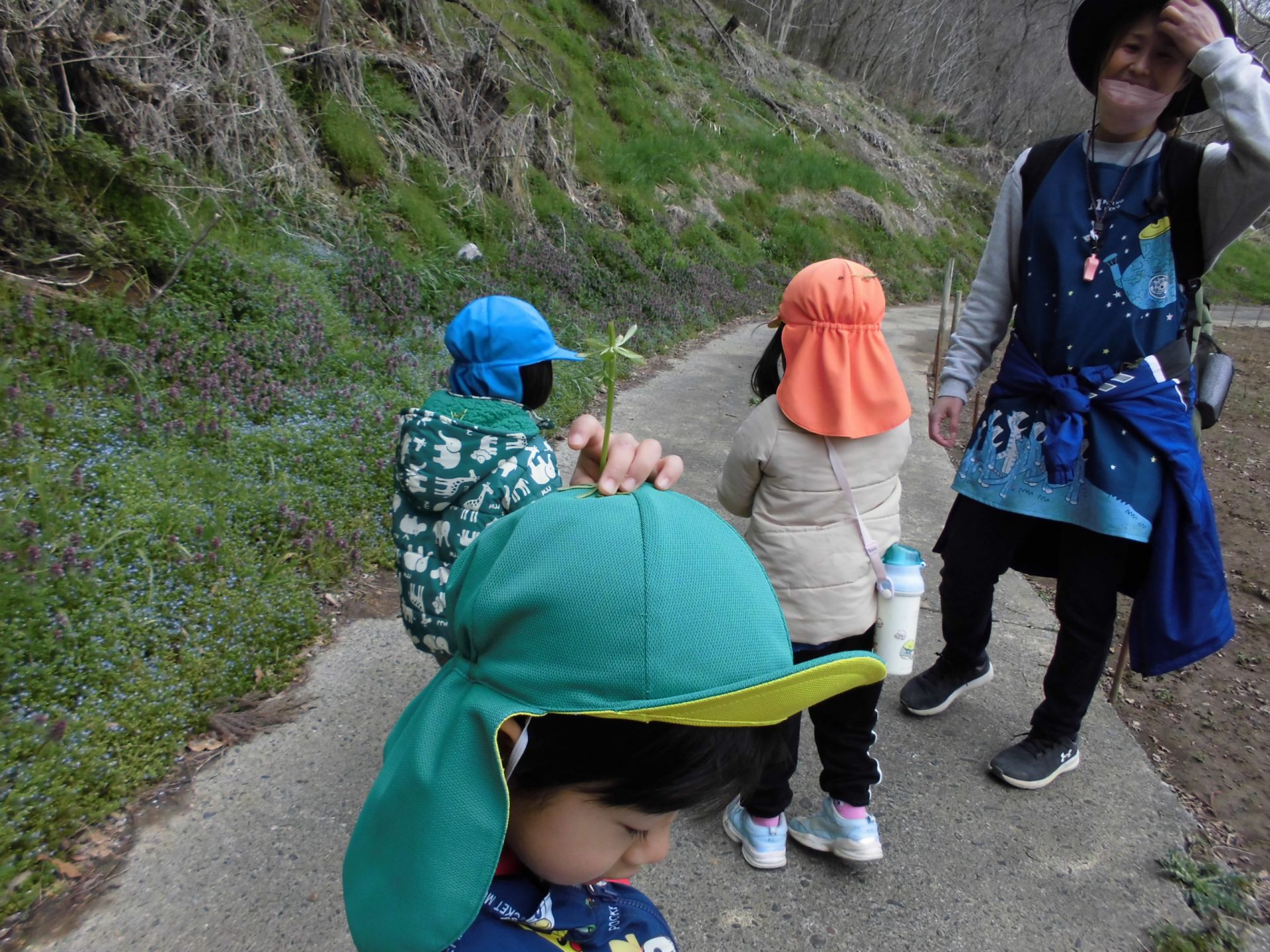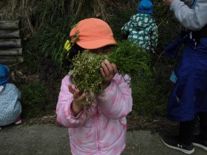 今まで、「くっつく葉っぱ」という認識はあったようですが、名前を知ったことでしばらくは「ヤエムグラ!ヤエムグラ!」と大合唱でした。知ったことばを楽しんでいるので、またいろんな植物の名前も知っていくといいのではないかと思いました。