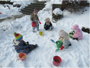 待ちに待った雪が降って子ども達は大喜び!「雪遊びできる?」と楽しみにしていた子ども達です。