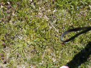 きれいな紫色の小さなお花でした。よく見つけたね!これも摘んでいこうね。