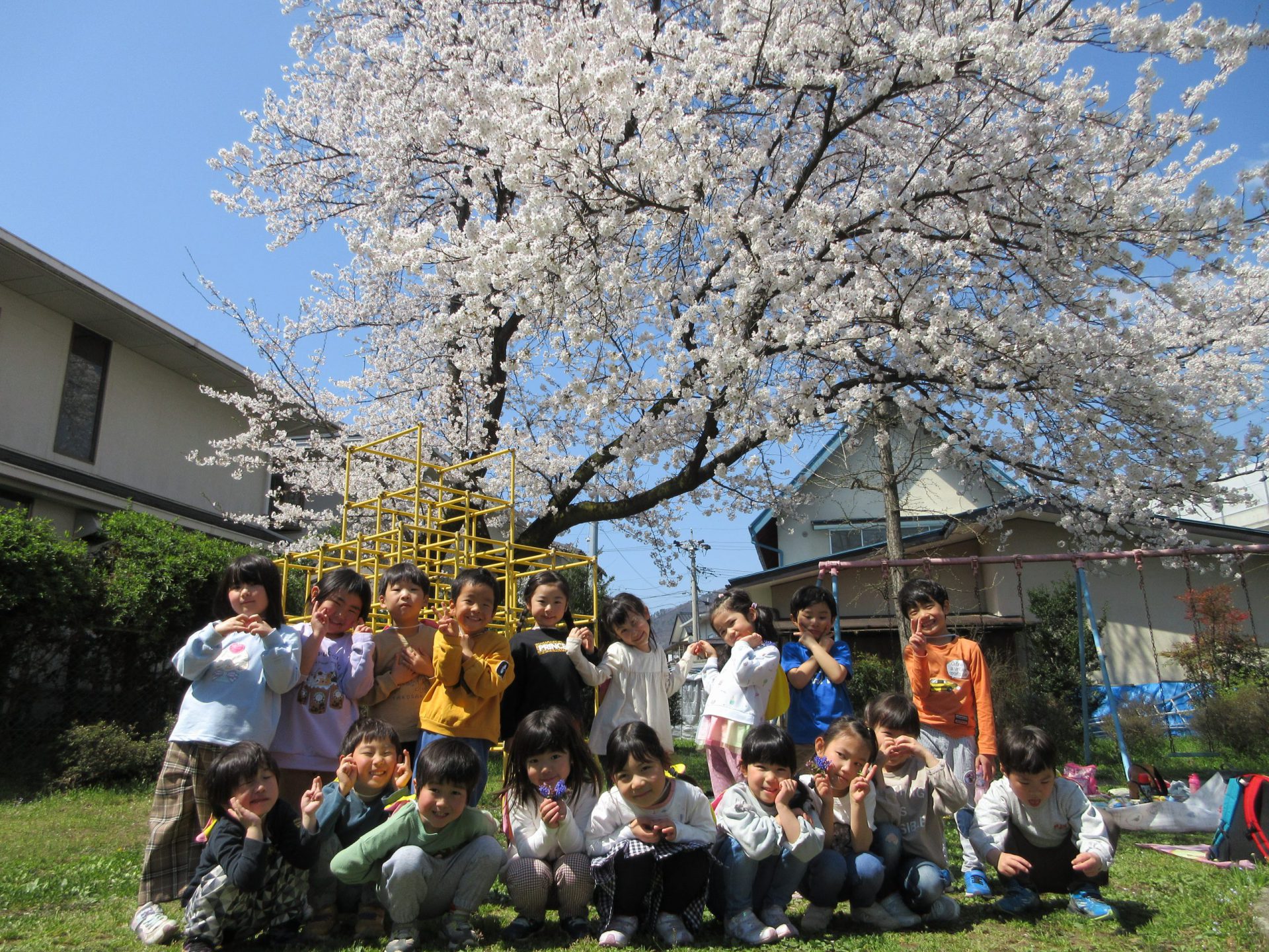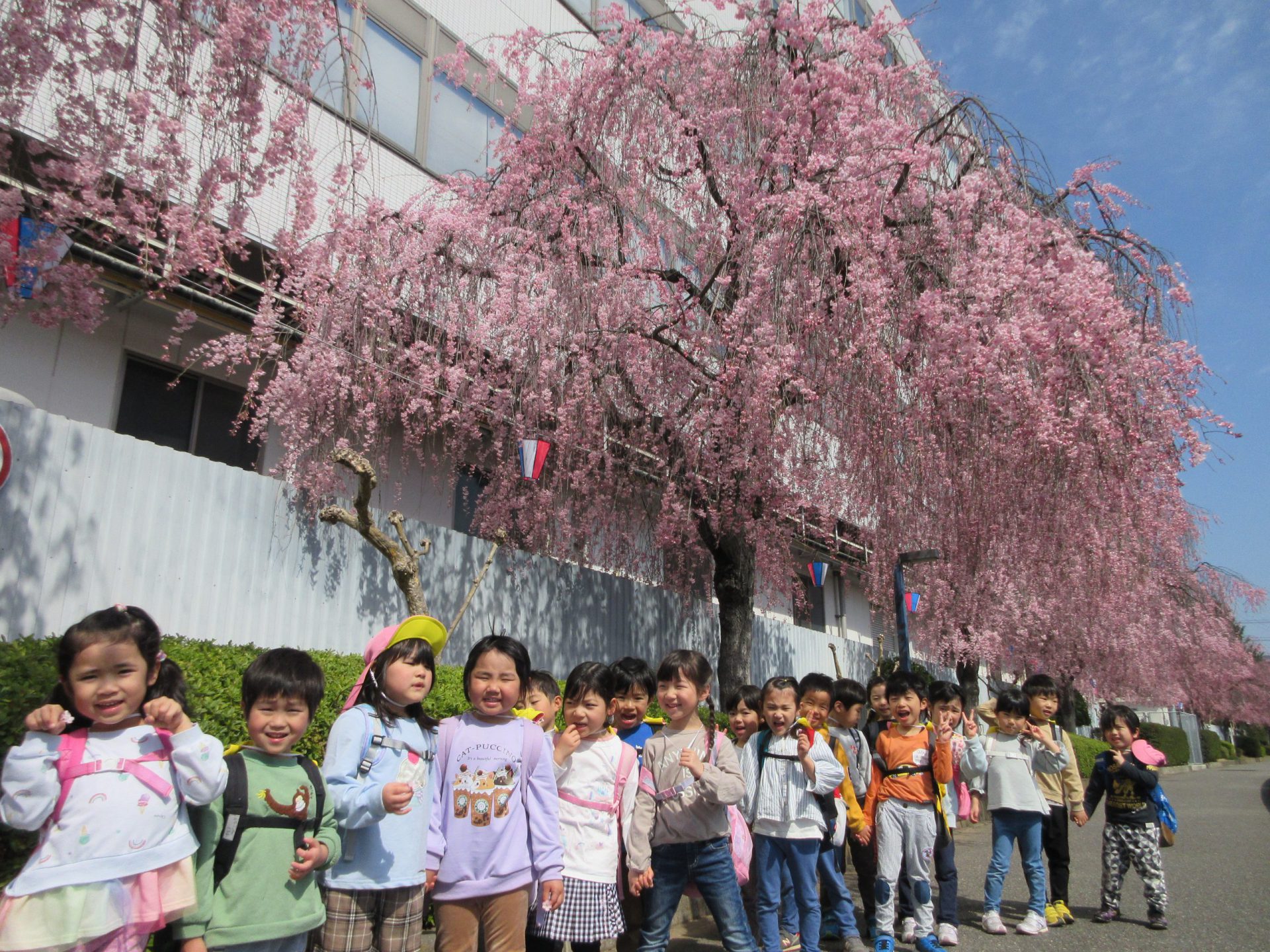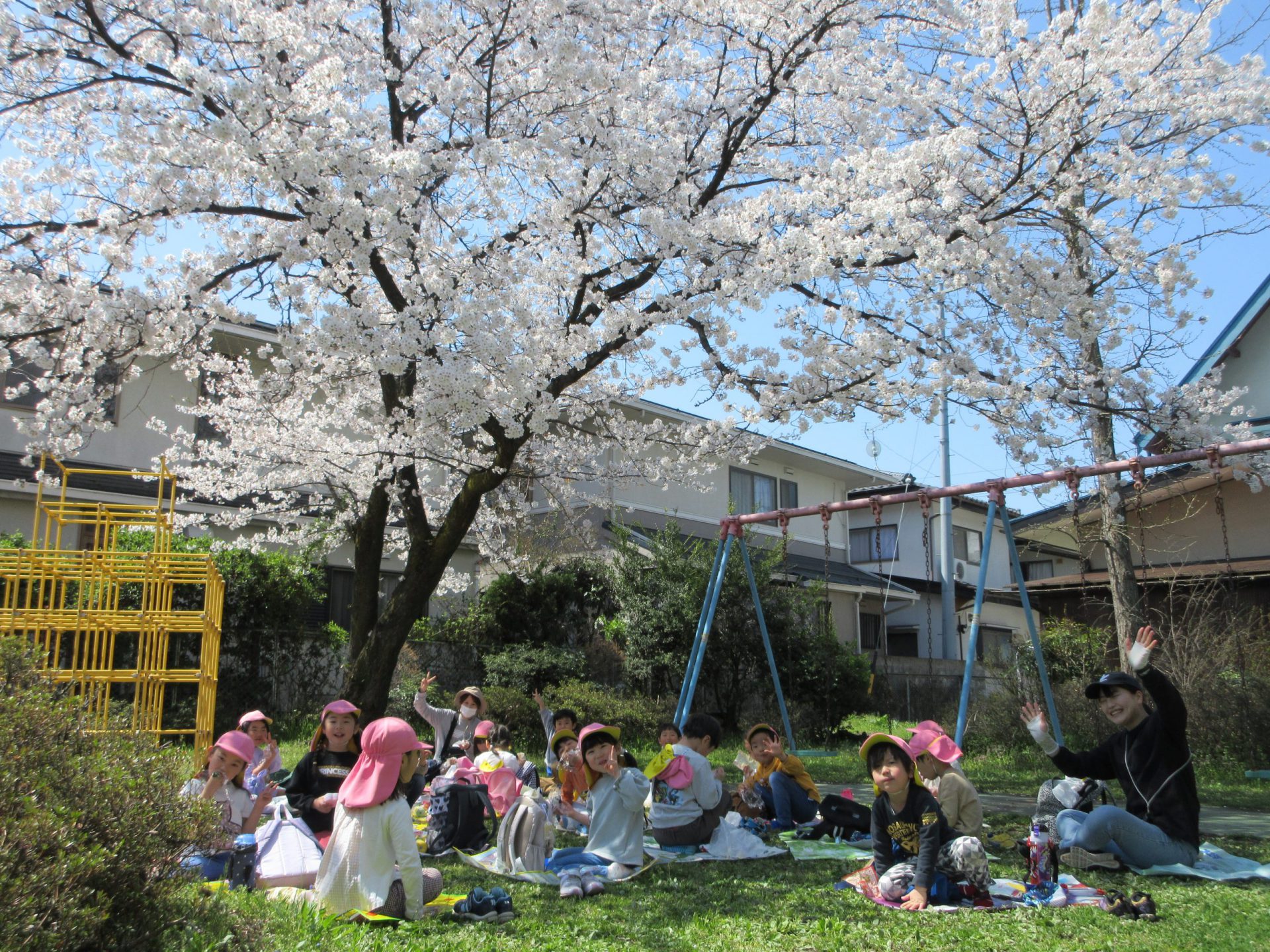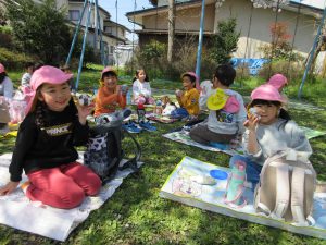 年中組の3月から「ピクニックしたい!」と言っていたひまわり組の子ども達。やっと暖かくなってきて、ピクニック日和になりました。前日に差出公園に行くと「明日どこの桜の木の下で食べようかな~」「いっぱい咲いてるところがいいな~」と楽しみにしていましたよ。今日行ってみると、どの桜の木も満開!昨日との違いを感じ取っていました。