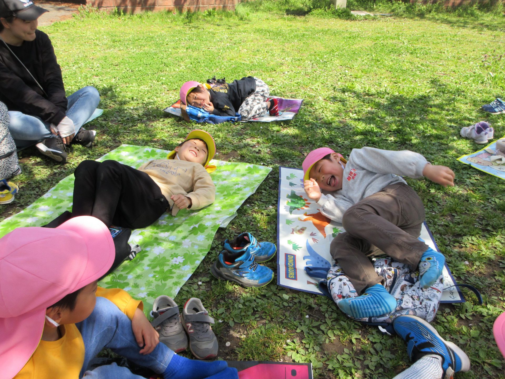 「きれいだね~」「ポカポカで眠くなってきちゃった」「ずっとこうしてたいね!」と話していました。