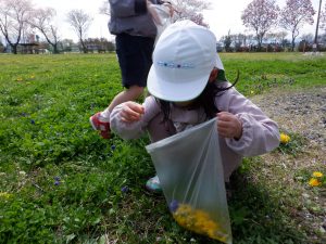 今年度は、進級して園庭の桜を見ることができ、近くの公園も桜が咲いている期間にゆっくりと出かけることができました。園庭だけでなく散歩に出かけることで、桜だけでなく、様々な春の自然をさらに発見し、一緒に楽しむことができました。