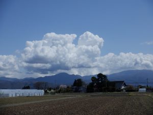 帰り道、雲を見て「わたあめみたい」「くものうえでわたあめつくってるのかなあ?」