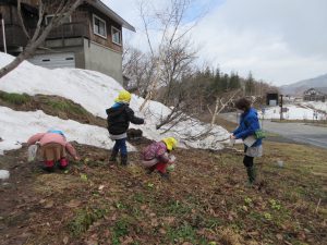 雪解けの葉っぱの下かに隠れている「ふきのとう」を次々見つける子ども達でした。
