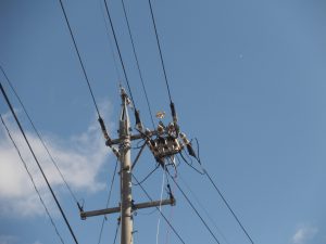 「あ!くるくる!」電柱の上の風車が好きなAちゃん。遠い空の向こうに、飛行機も発見!!!よく見つけたね。