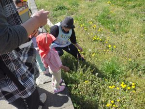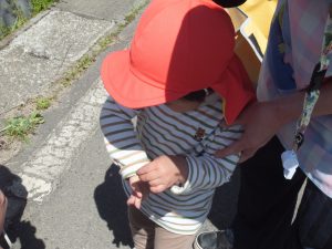 ゆっくり立ち止まりながら、草花を摘んで遊んだり、虫を見て触たりする機会を大切にしました。