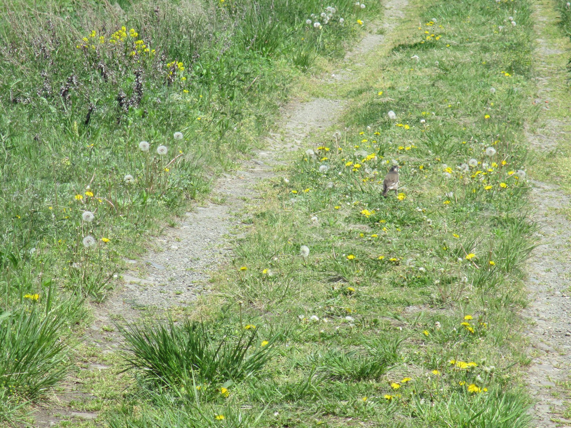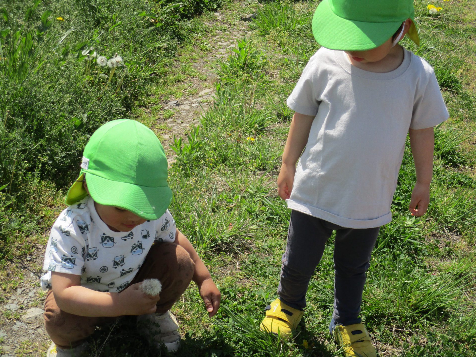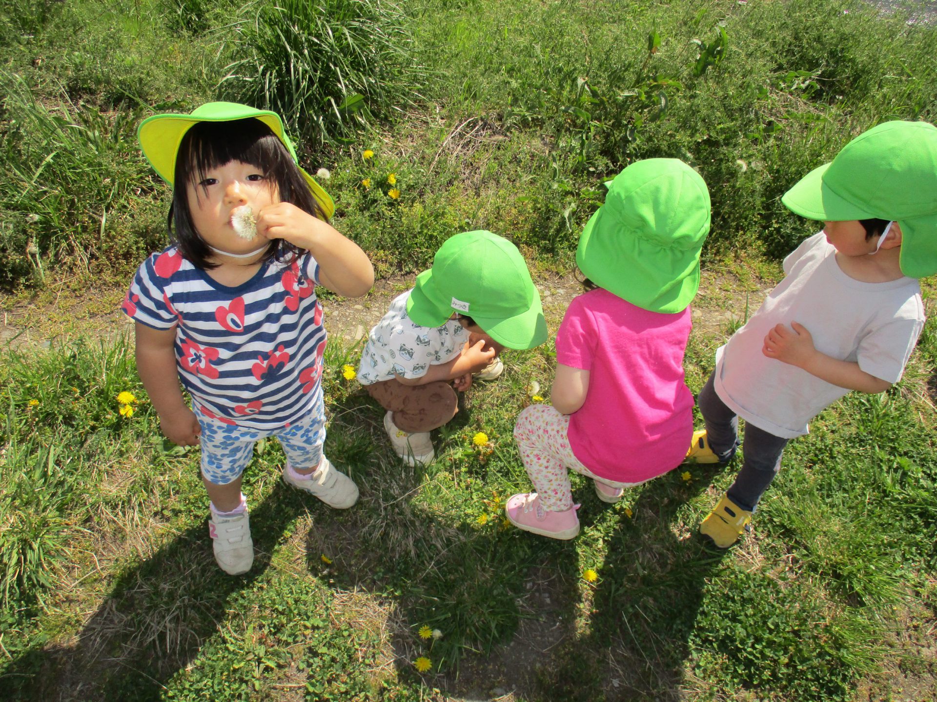 足下のタンポポ、その綿毛は息を吹きかけると飛んでいくこと。