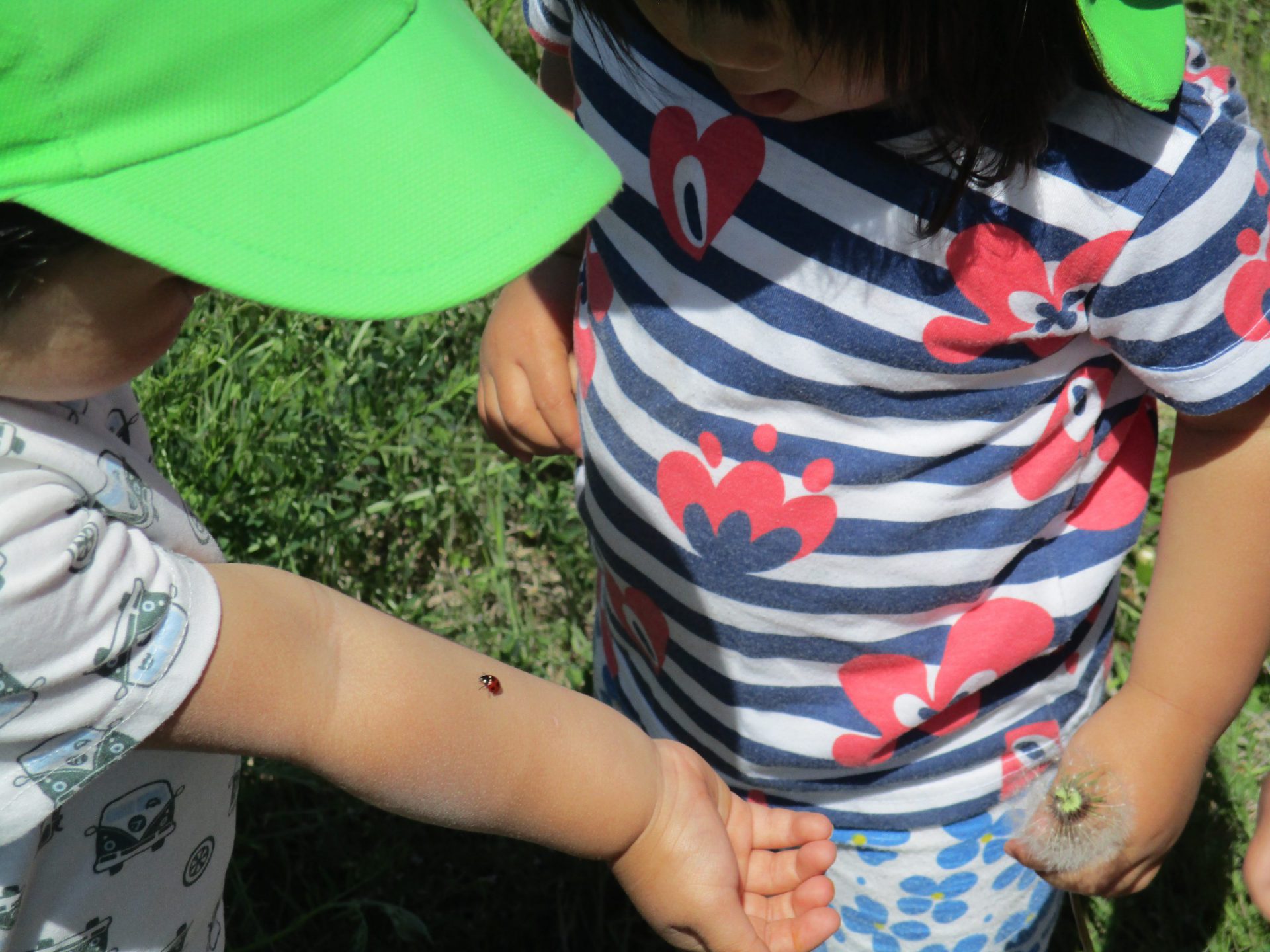 草むらをかき分けるとテントウ虫がいるドキドキ感。
