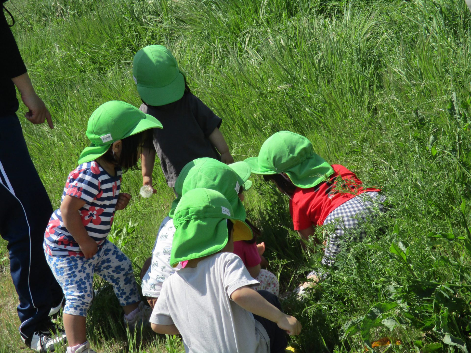 草むらをかき分けながら必死にテントウ虫を探す子ども達の本気が伝わってきます。