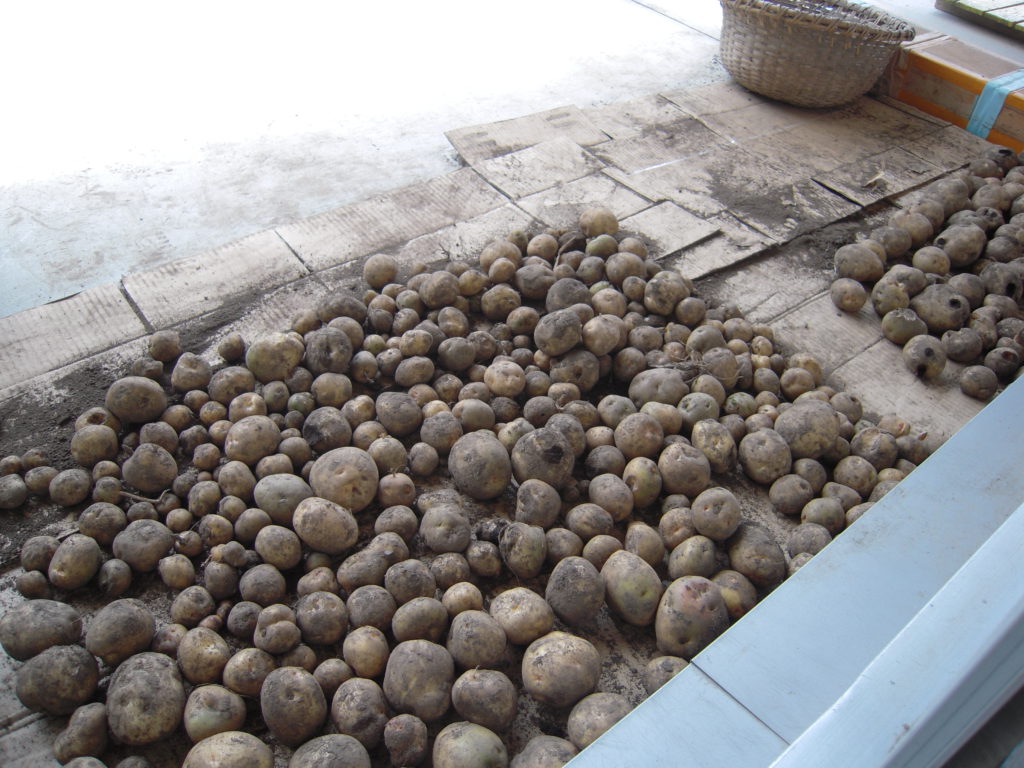 たくさんのじゃが芋が園舎の軒先に干してありました。