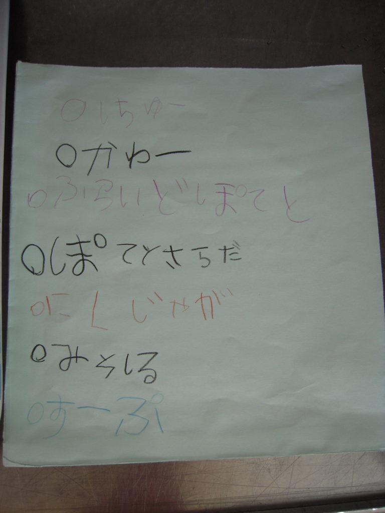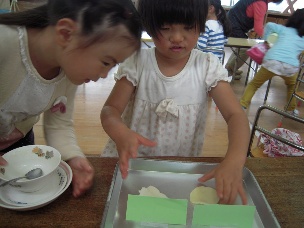 「これ、白いからだんしゃくだ!」と微妙な色の違いを見て、種類の違いも考えながら食べていました。