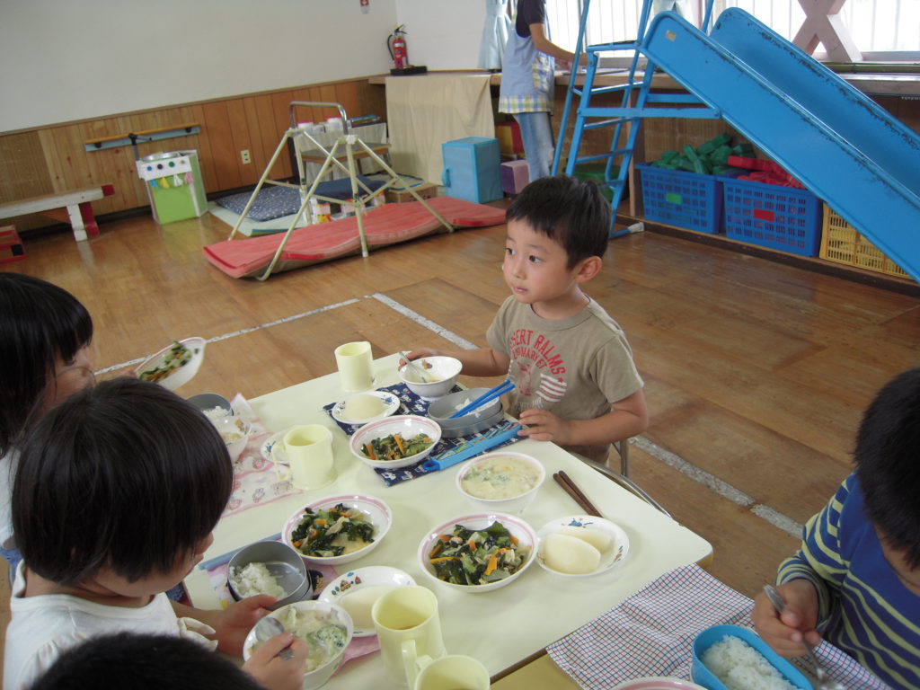 8月の中ごろ、栄養士がお昼の園訪問に行くと、