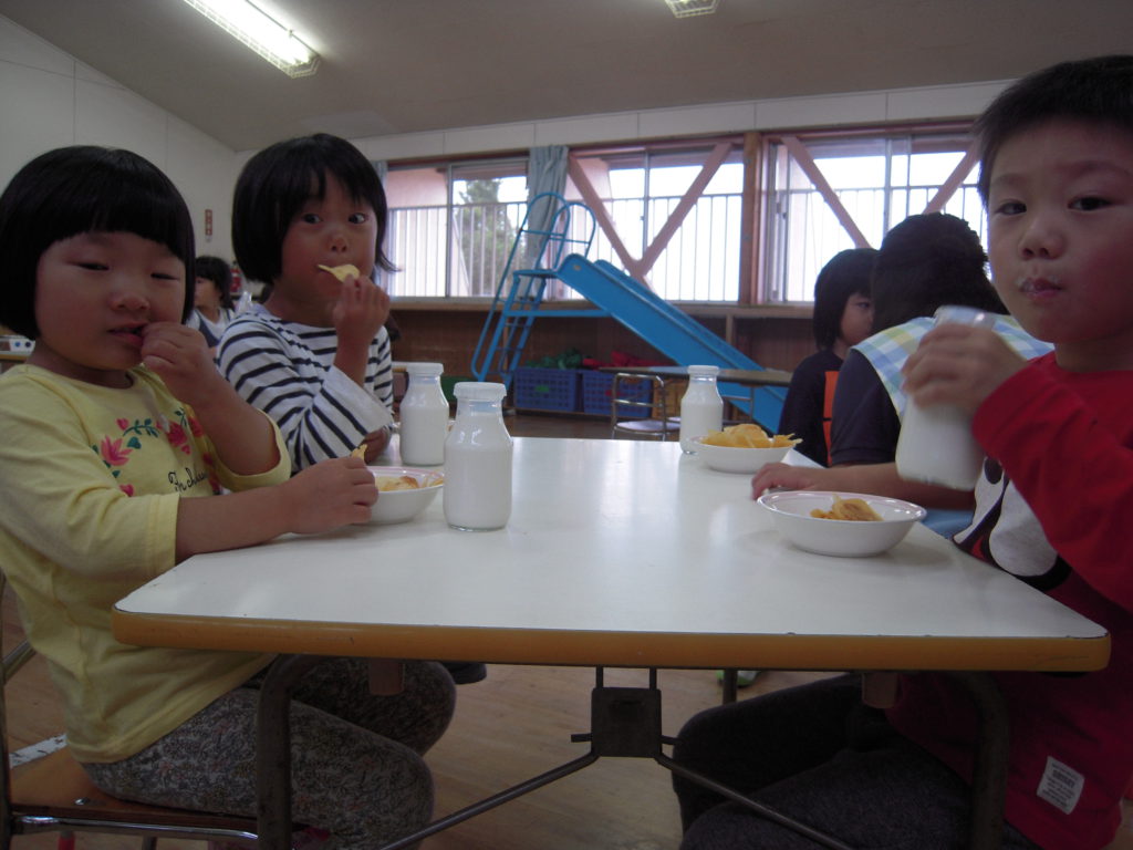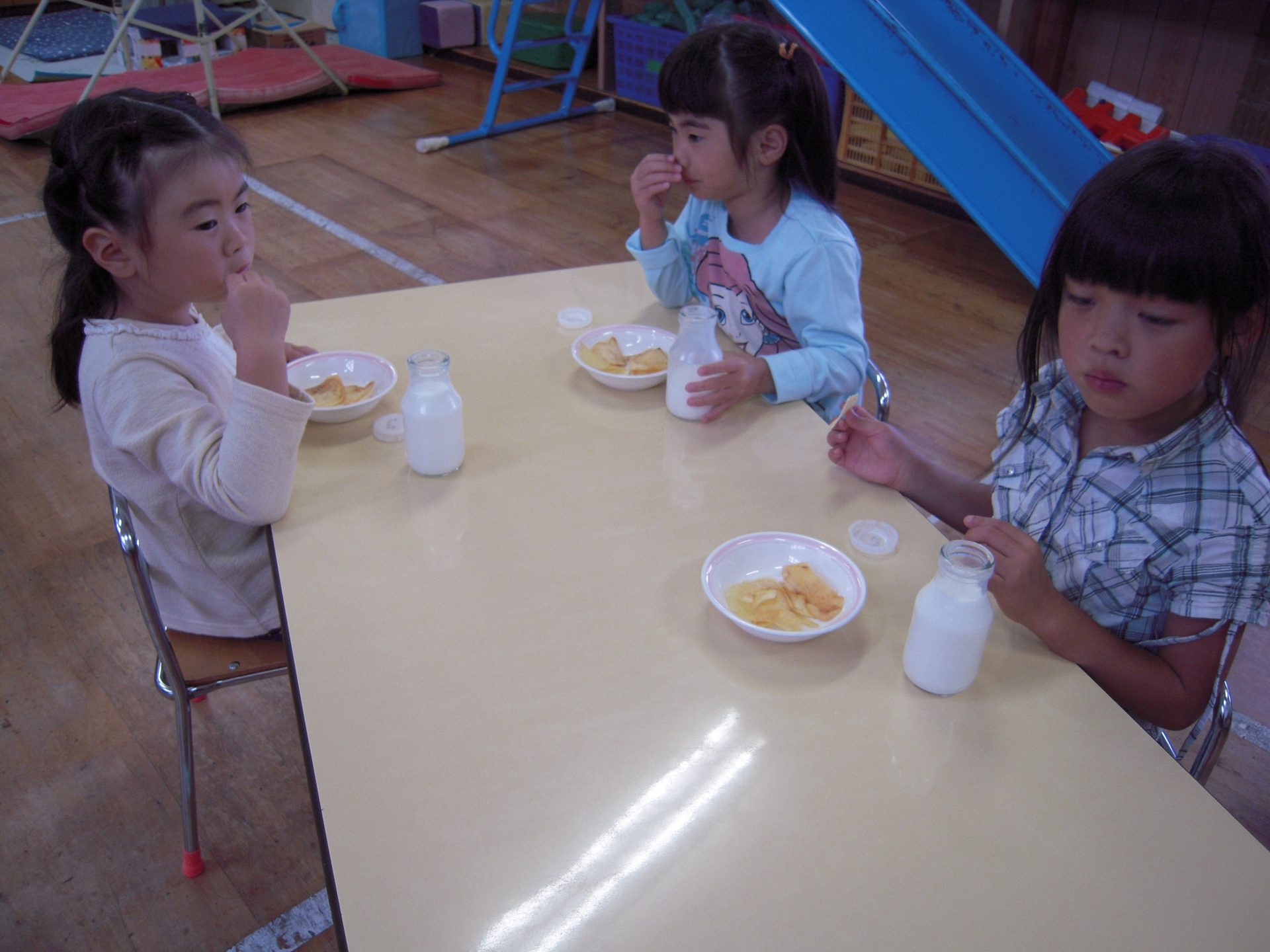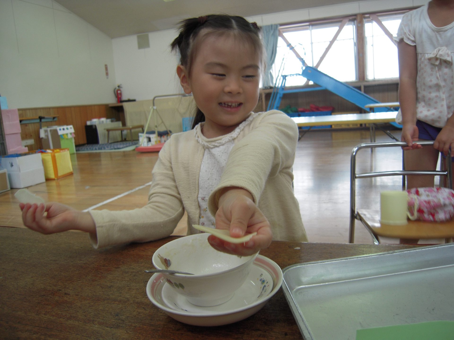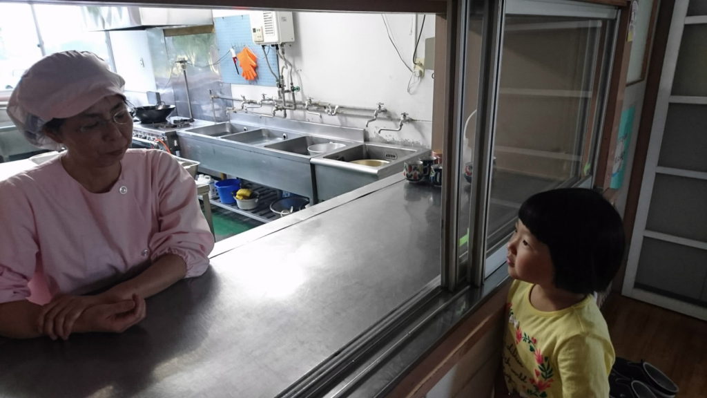 おやつの後、給食室の前にひとりの女の子の姿がありました。