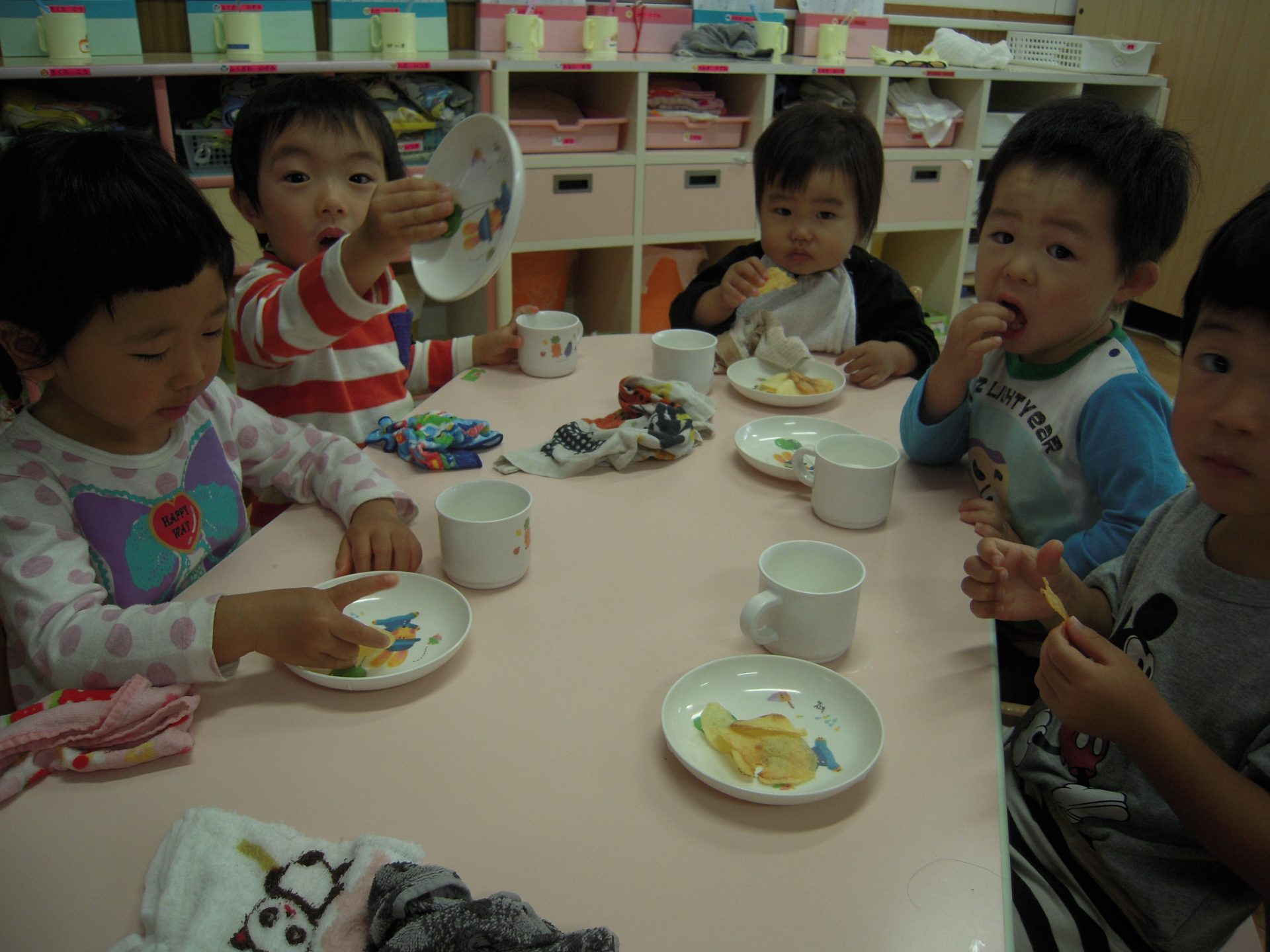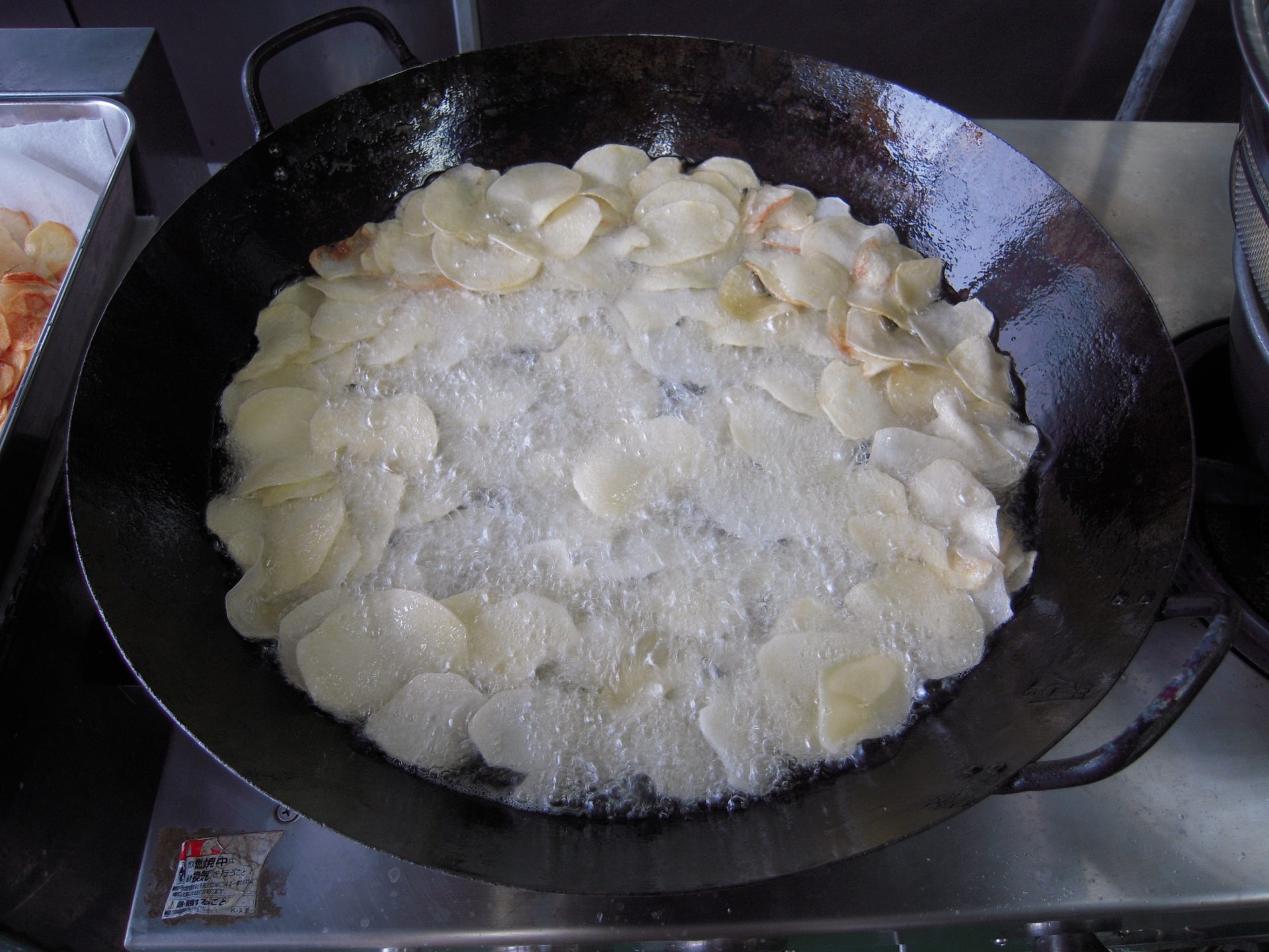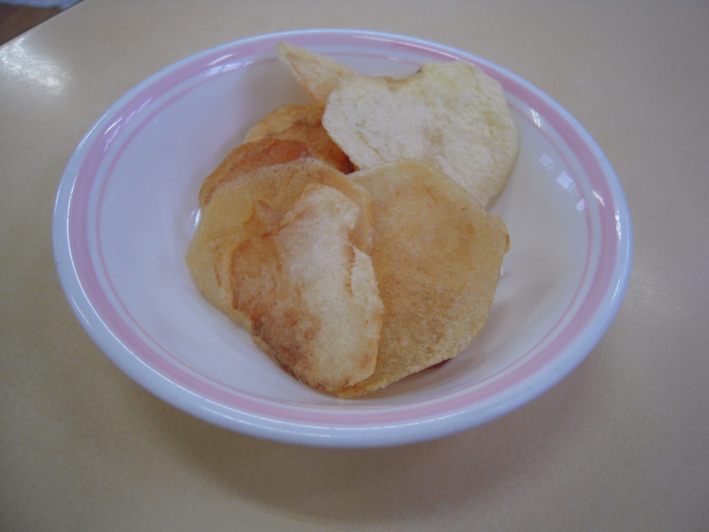 薄くスライスして十分水にさらしたものを、みんながお昼寝をしている間に揚げてくれました。