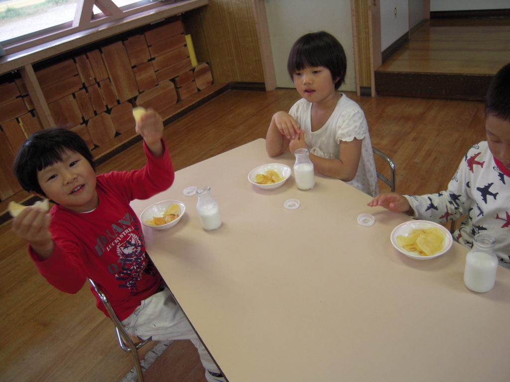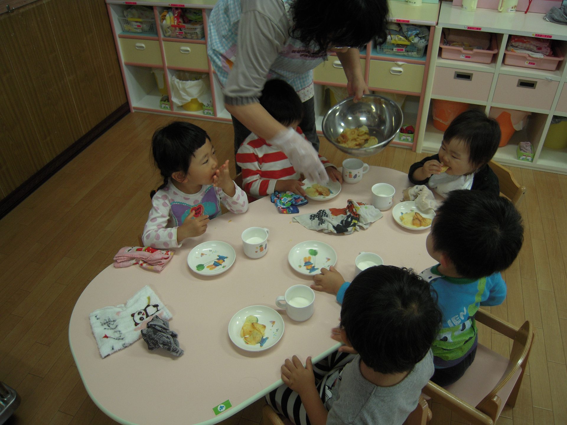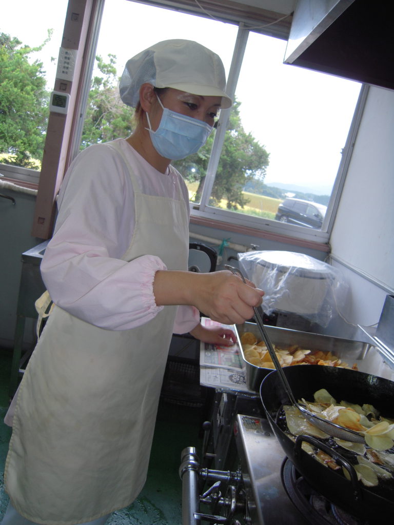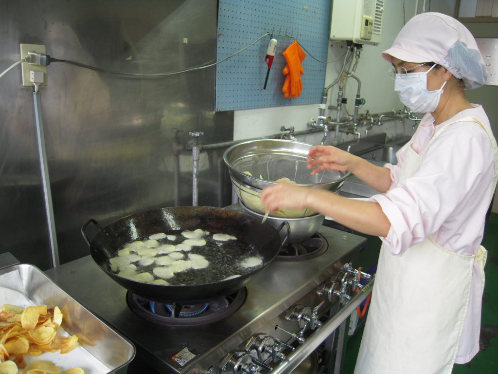 薄くスライスして十分水にさらしたものを、みんながお昼寝をしている間に揚げてくれました。