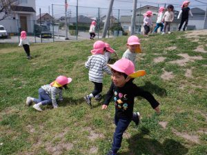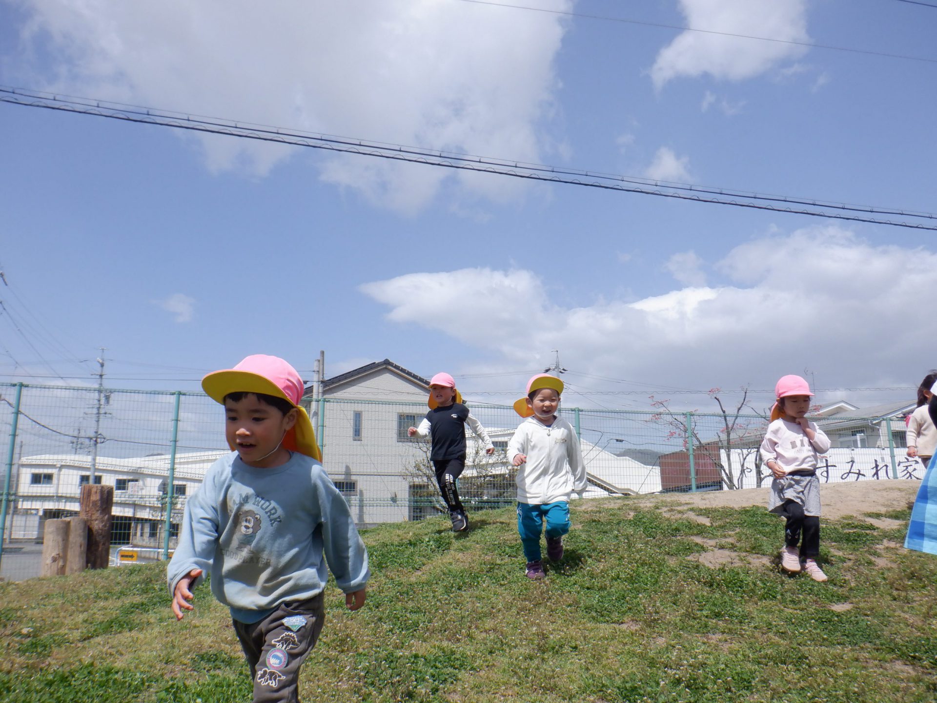 ・春の風が心地よい季節。体を動かしながら季節を感じられる活動内容も取り入れています。