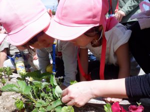 楽しみはもう少し先。イチゴの成長を楽しみにしつつ、小学校へお散歩に行きました。