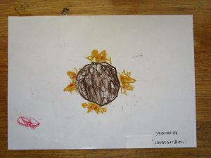 種芋を植える前日には、種芋を触ってみたり、においを嗅いでみたり観察しながら種芋の絵を描きました。