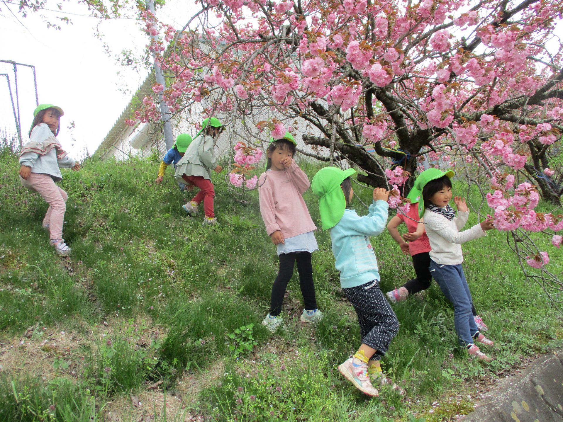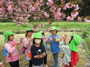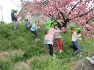 この桜で去年の年長さん桜茶飲んだんだよ~と、話をすると、「あ~外で飲んでたよね」よく覚えていたね!「飲んでみたいよね」「うんうん」では、今年も桜の塩漬け作ってきましょう🎵
