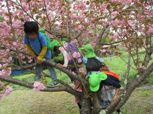 段々と目的が変わってきているような・・・でも木登り楽しいよね。あれ?全開に咲いた桜が落ちてるよ?これはどうしようか?