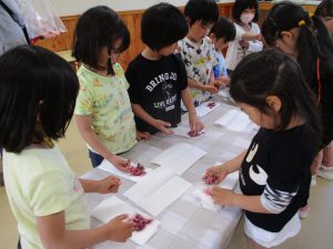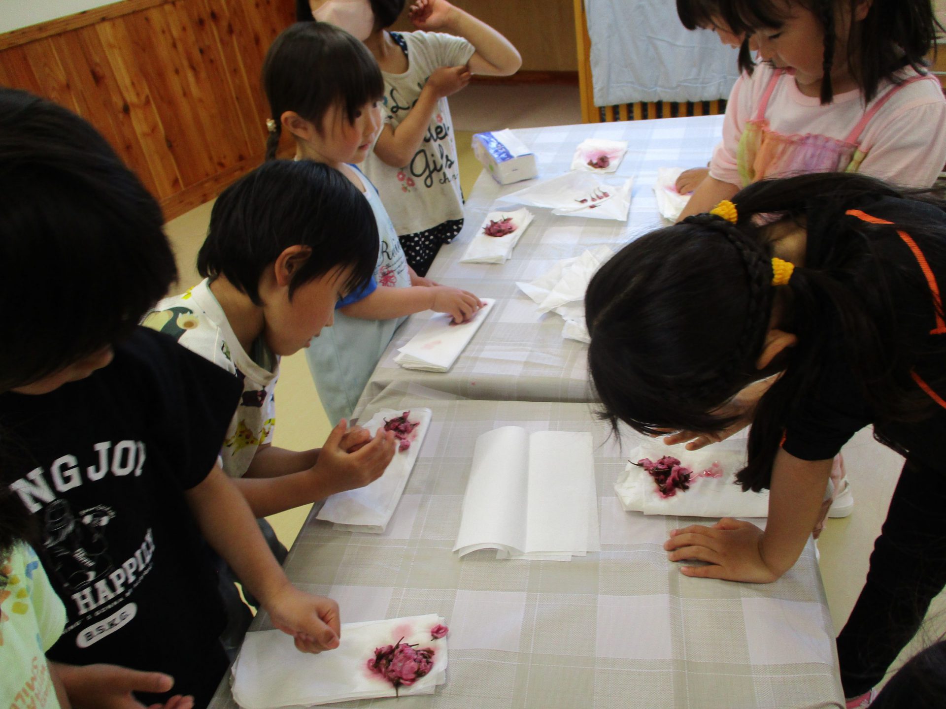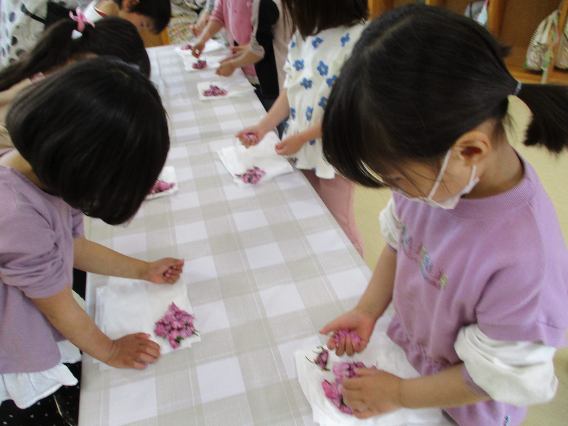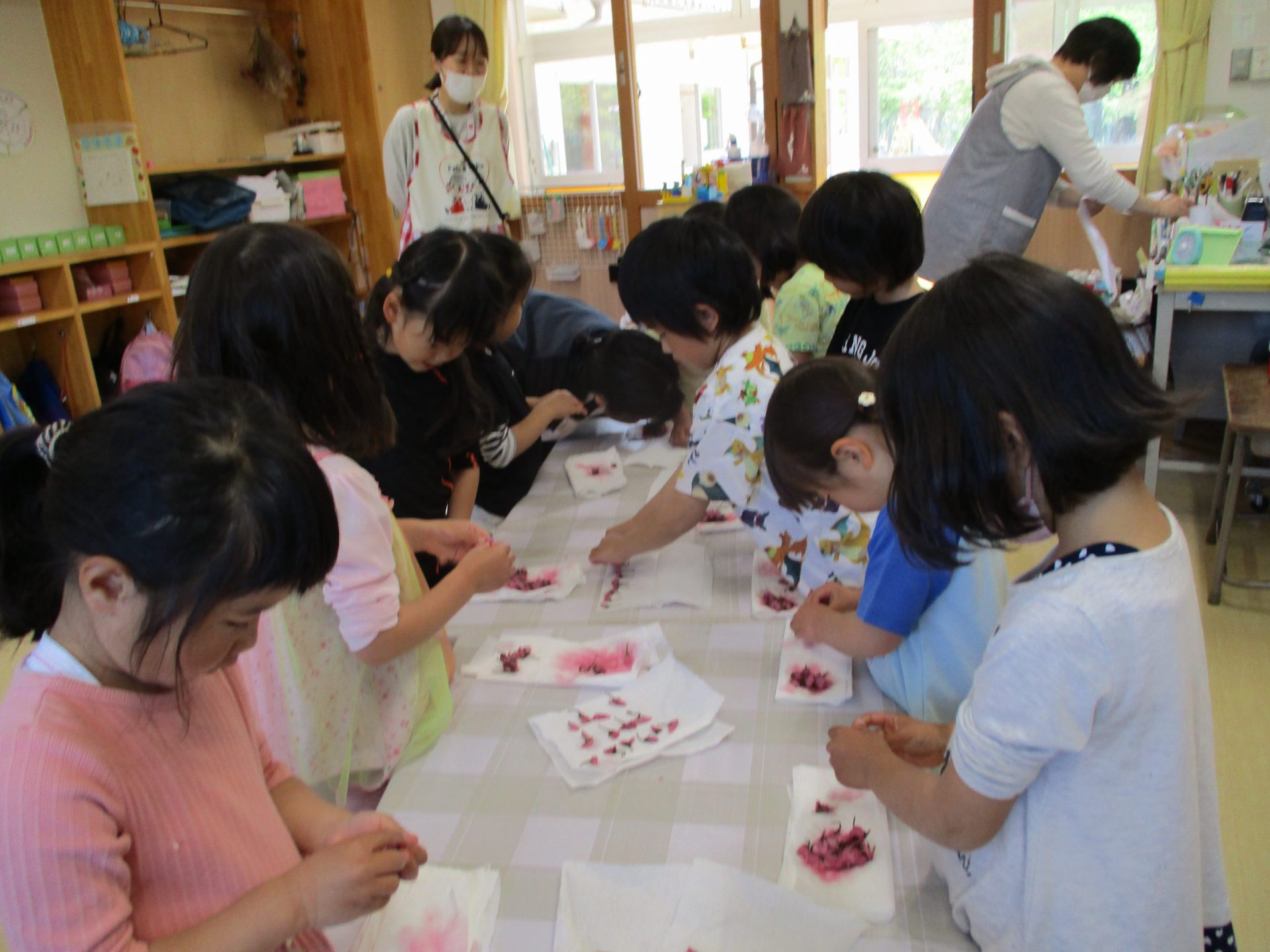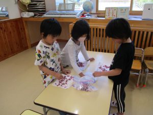 水遊びにならずに丁寧に洗っていきます。桜の並べ方もみんな違う!(その写真なく残念!!)
