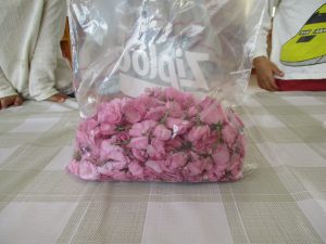 「どれくらいのとるの?」見本を見せながらこれ位5~6分咲きがよいのよ!