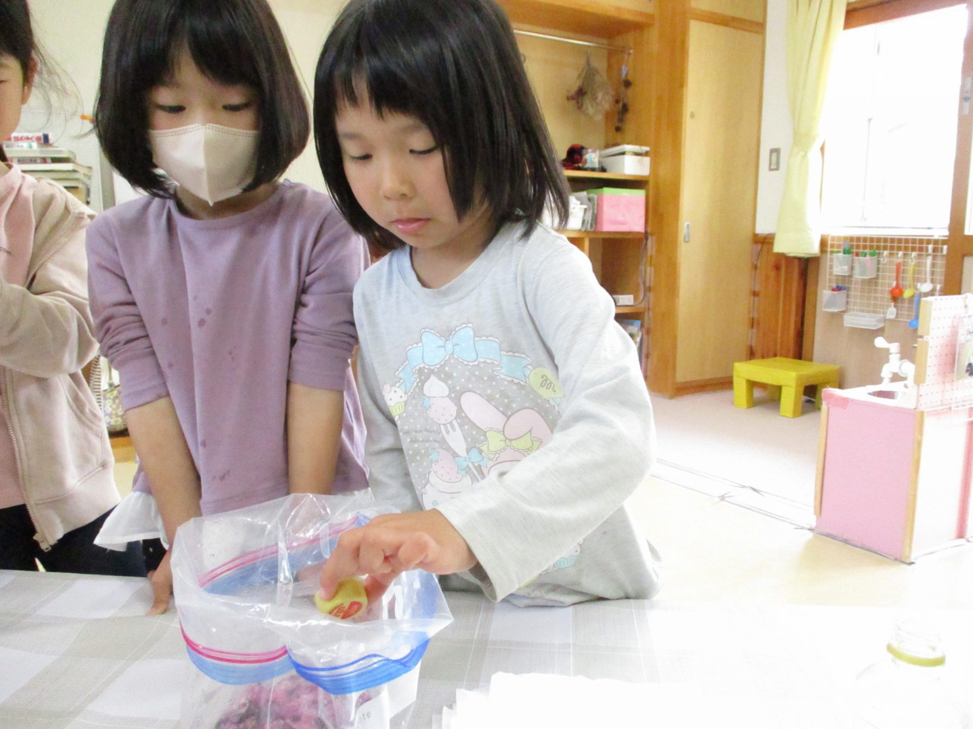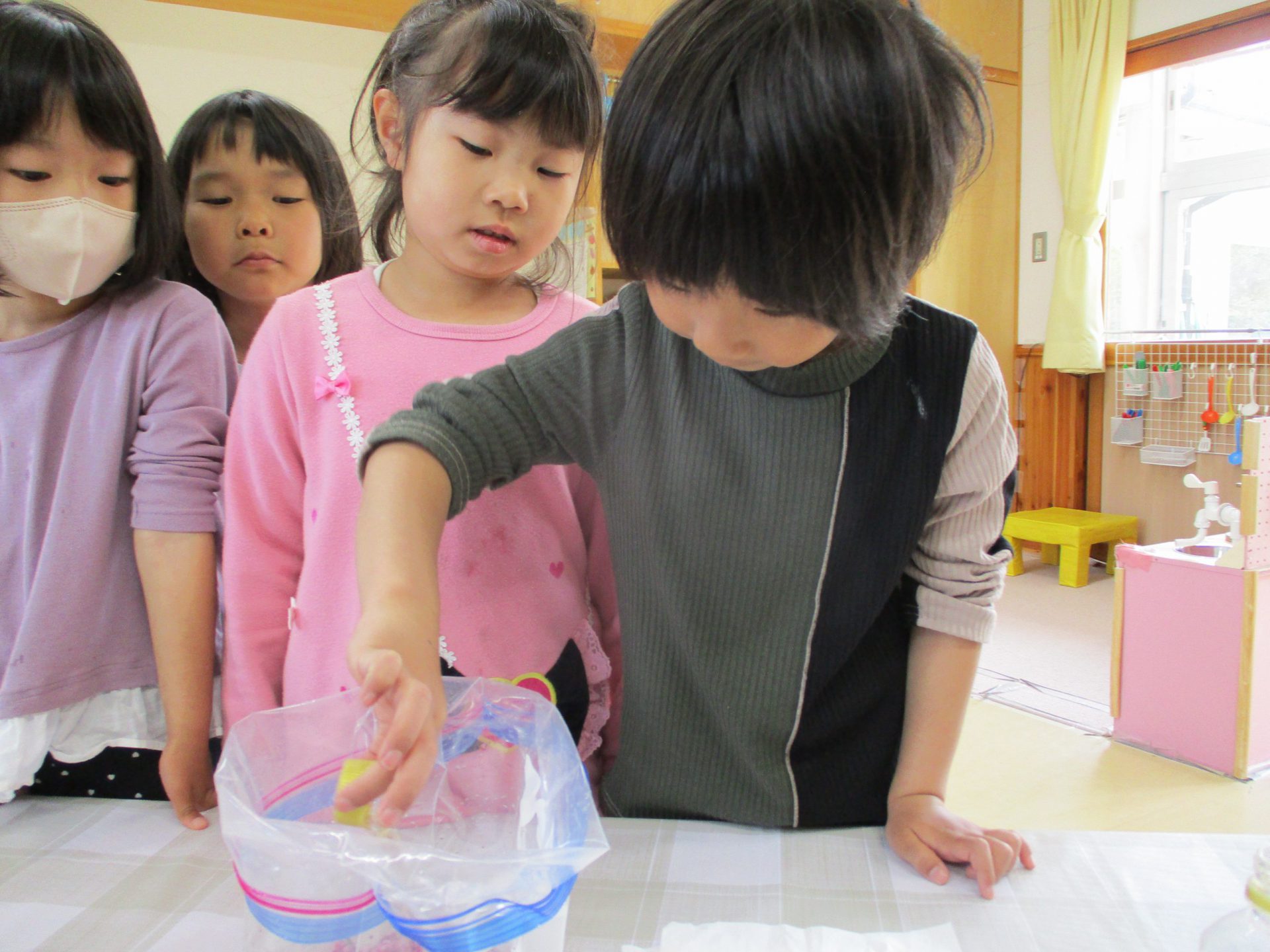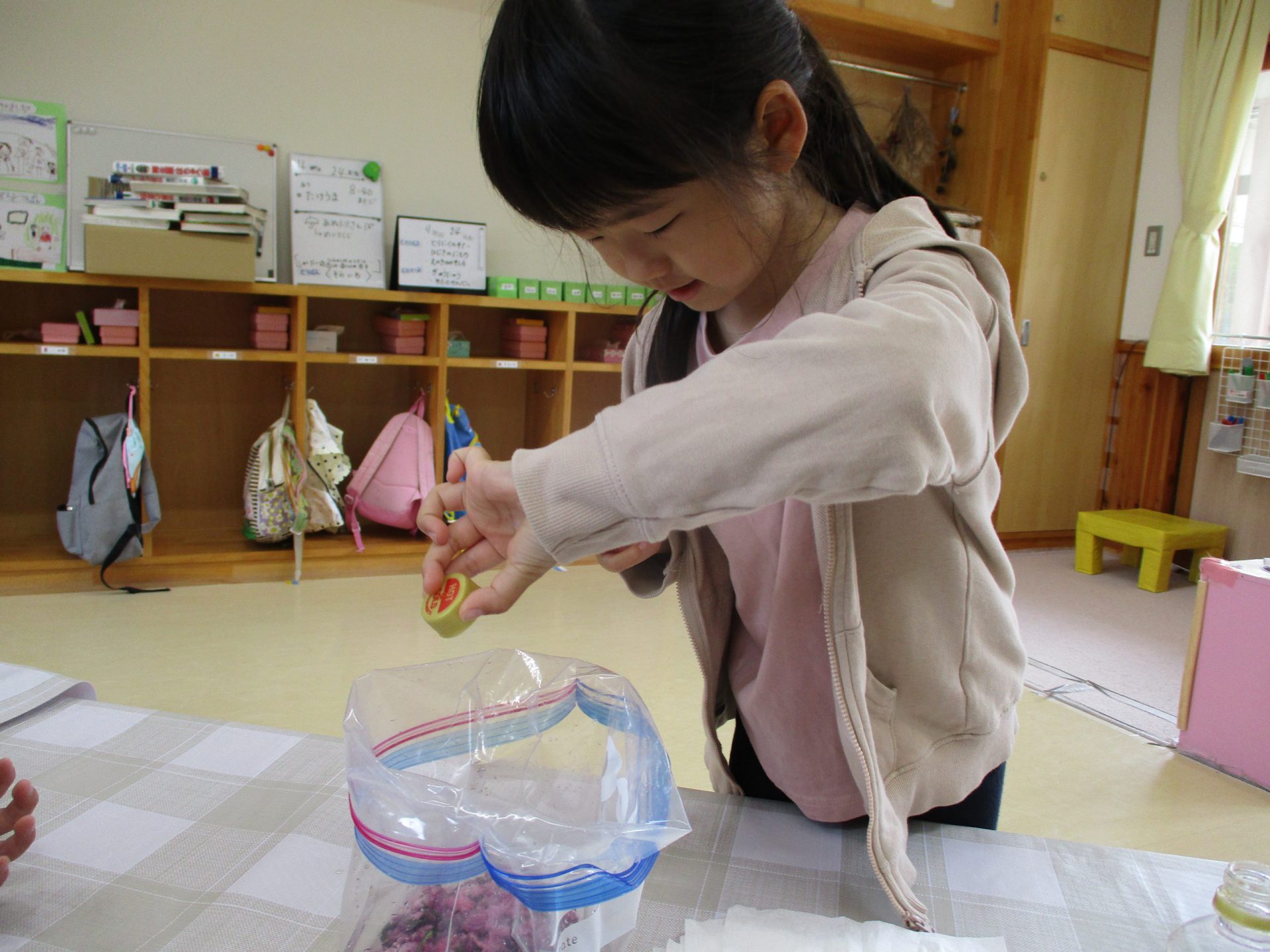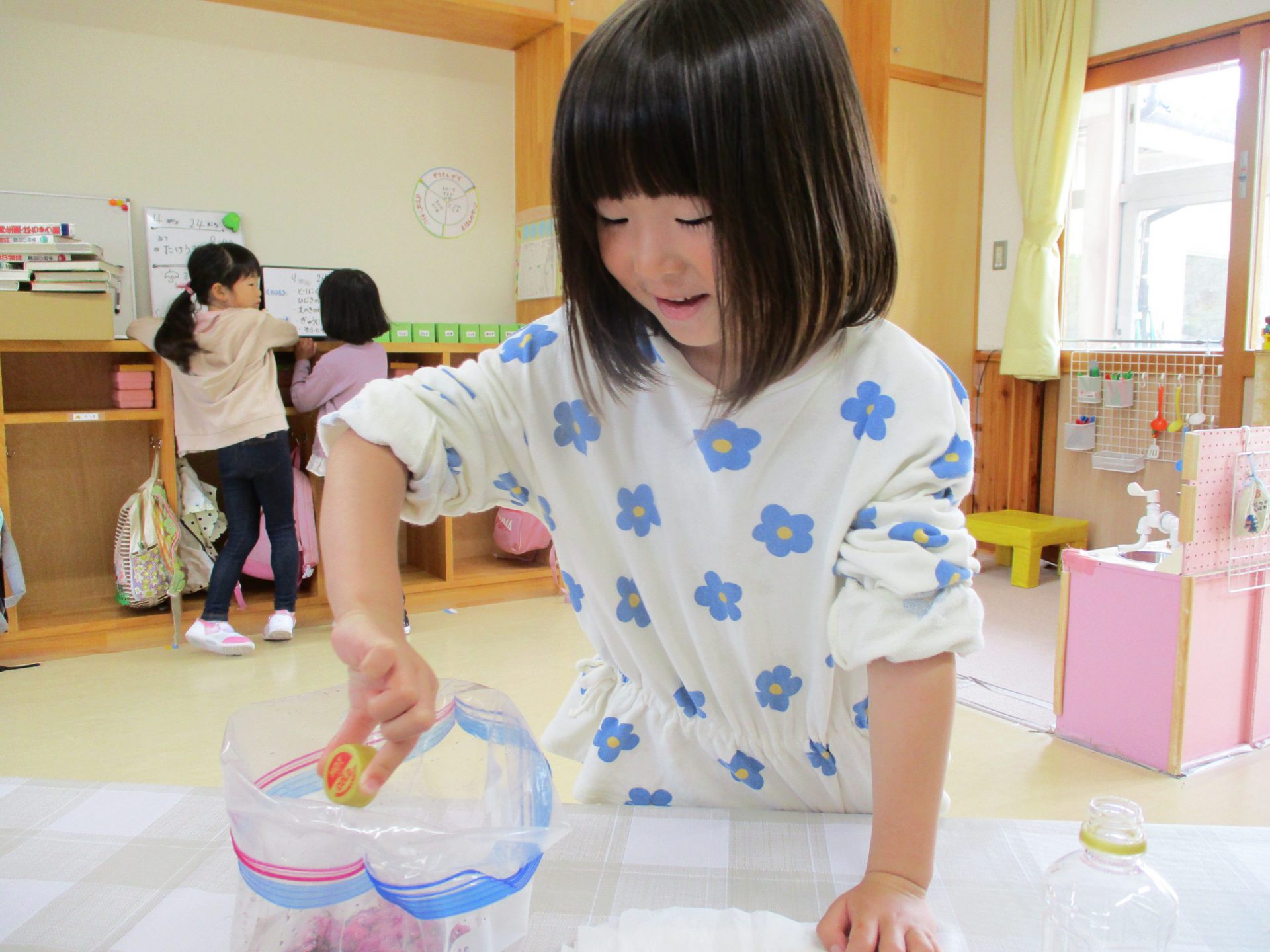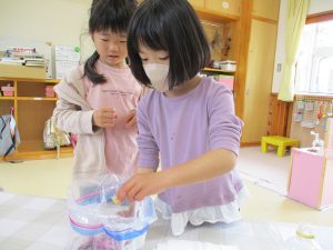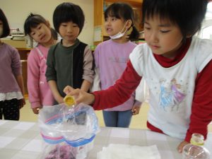 みんなでキャップ1杯ずついれていこう「何か匂うよね」「なめたら酸っぱいのかな」なんて言いながらいれていましたよ。