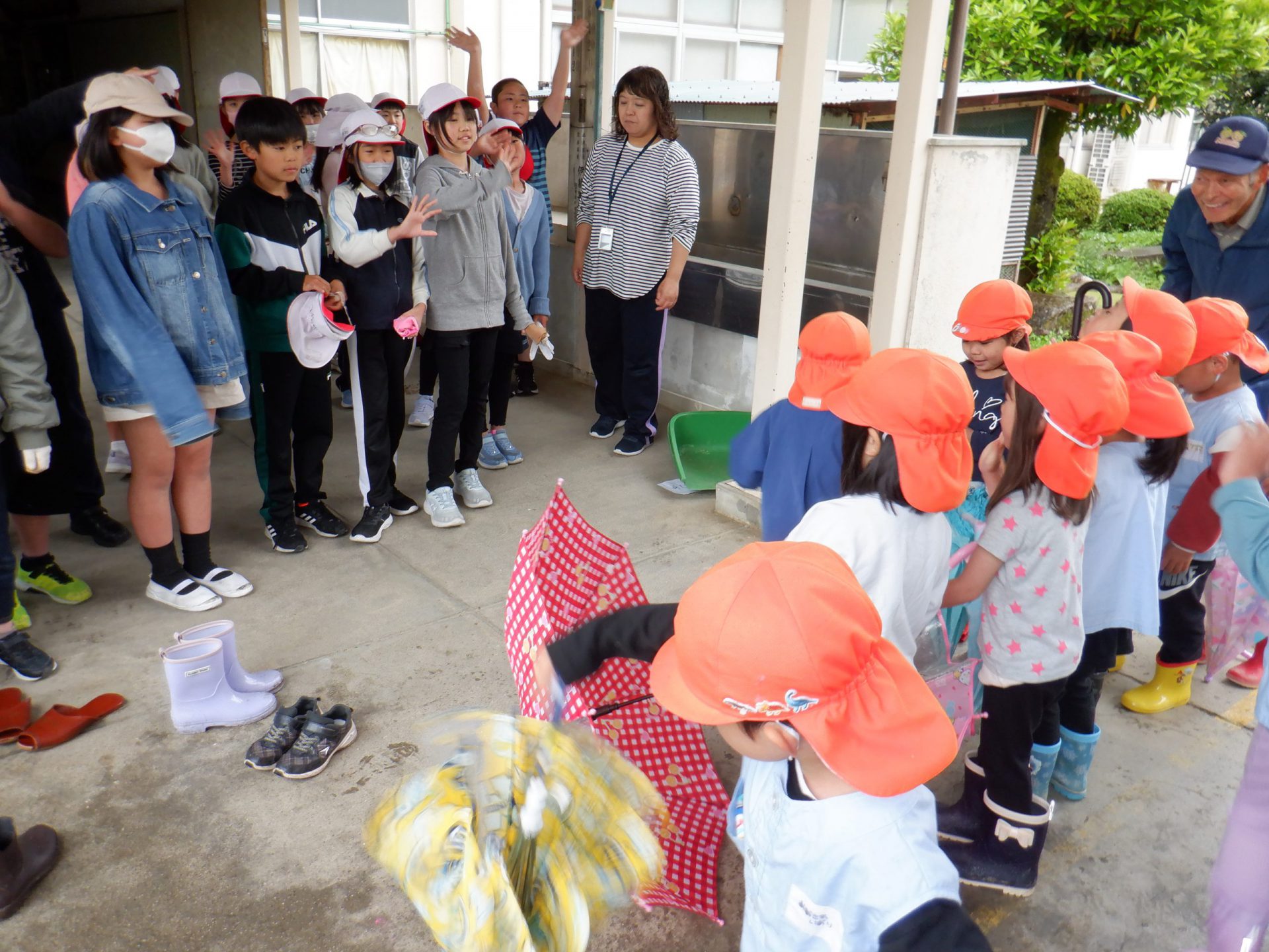 5年生のお友だちが見ている年長さんを「一緒にやろ!」と誘ってくれて、子どもたちは大喜びでお手伝い。