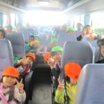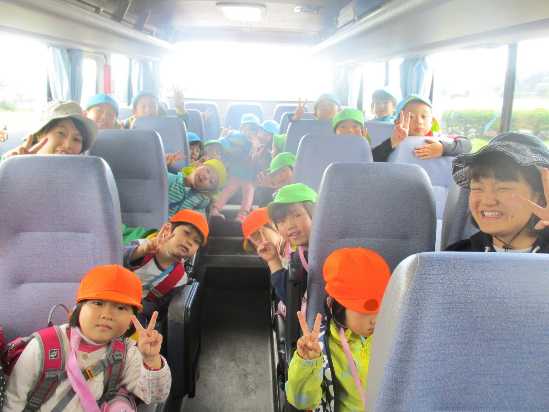 バスに乗ってレッツゴー!春の遠足は雨でリズム室で遠足ごっこだったので、期待感も高まります。