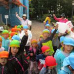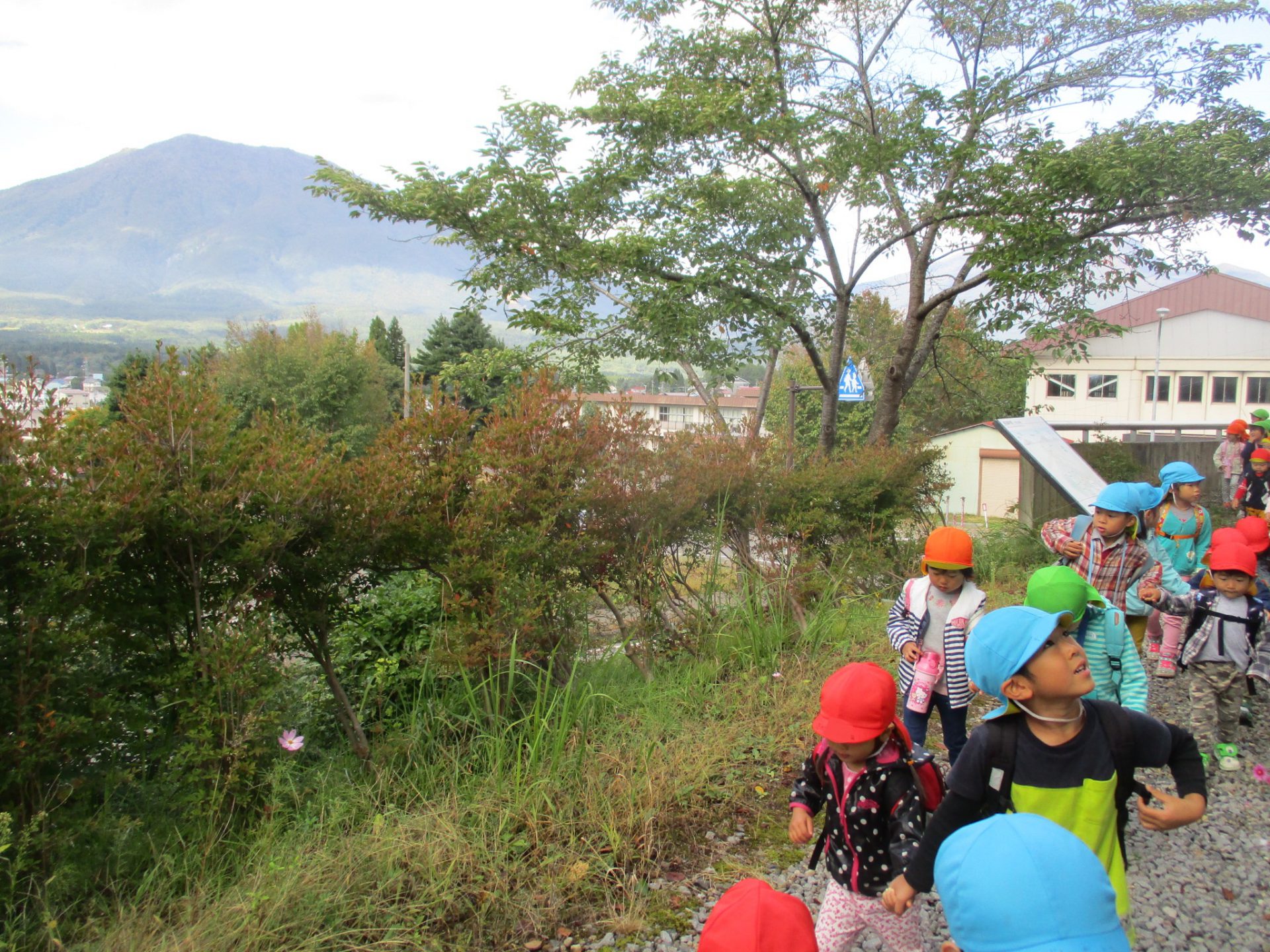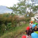 「ぼくんち、こっちの道を行くと着くんだよ!」と会話を楽しみながら富士里をぬけると、信濃小中学校が見えてきました。年長さんはもうすぐ!小さいお友達は大きくなってからね!と学校を眺めることができました。