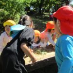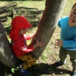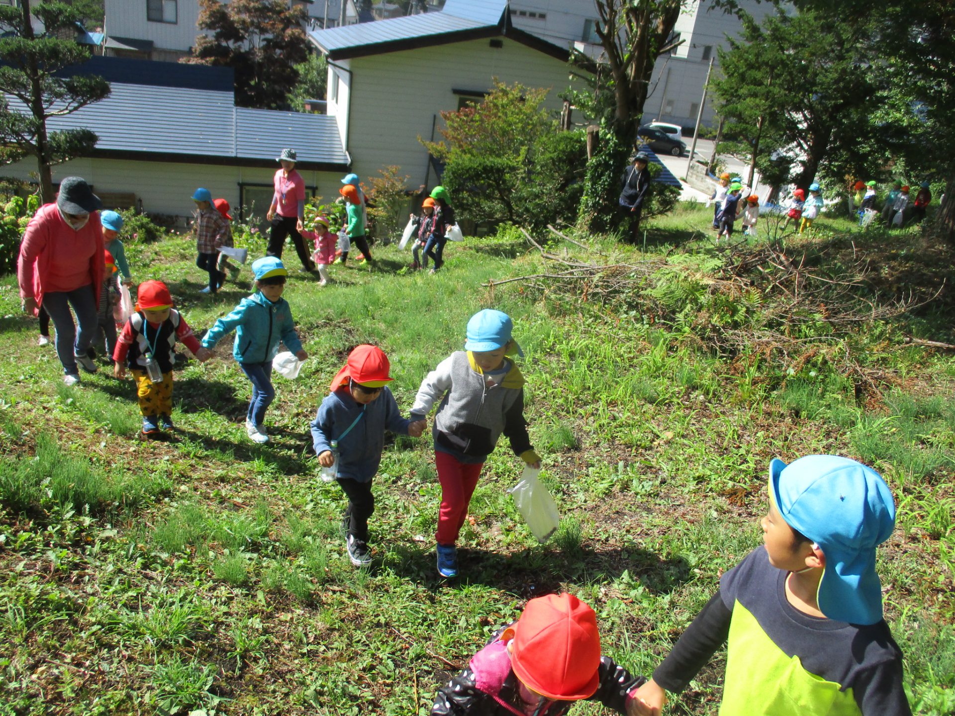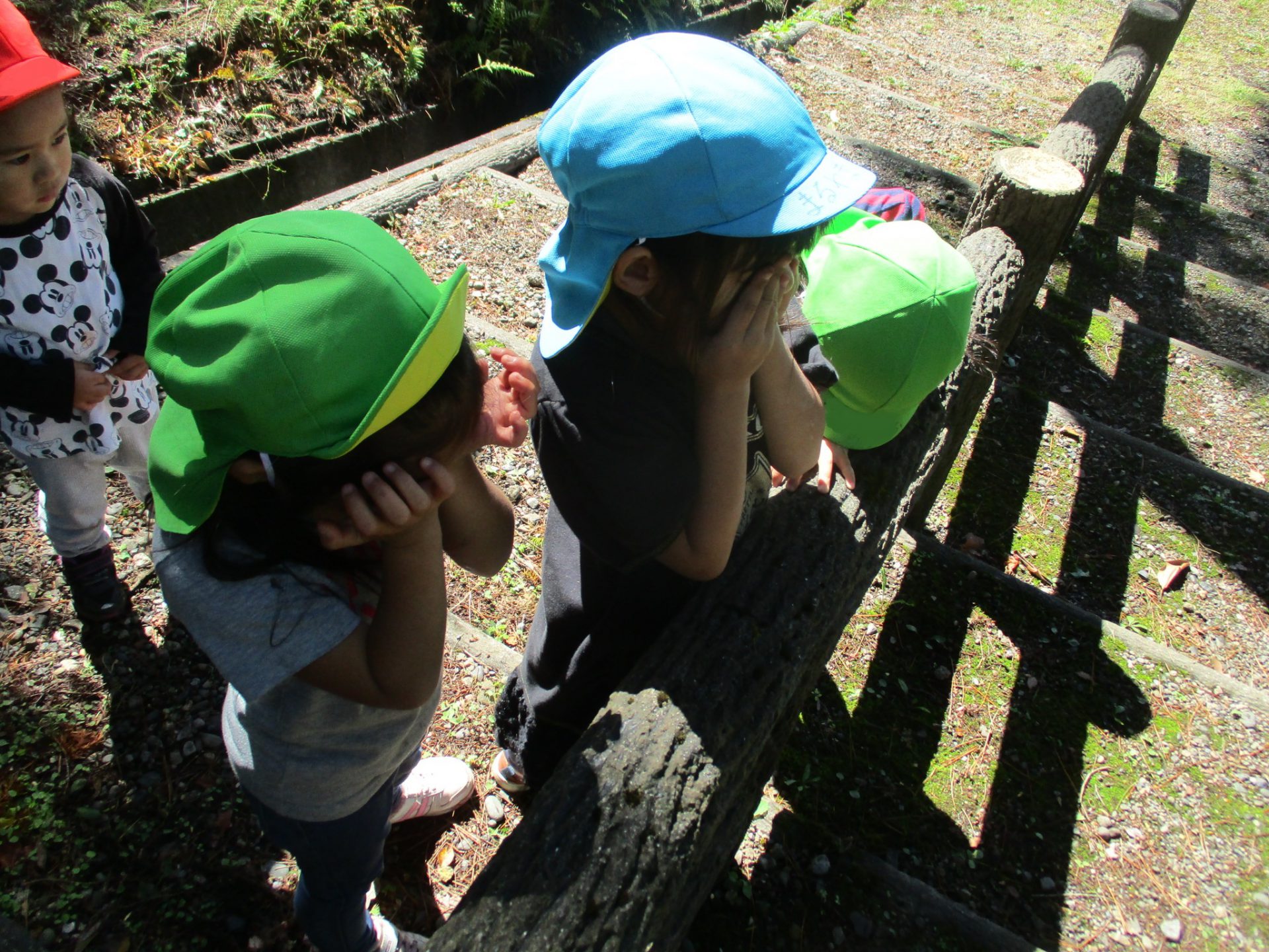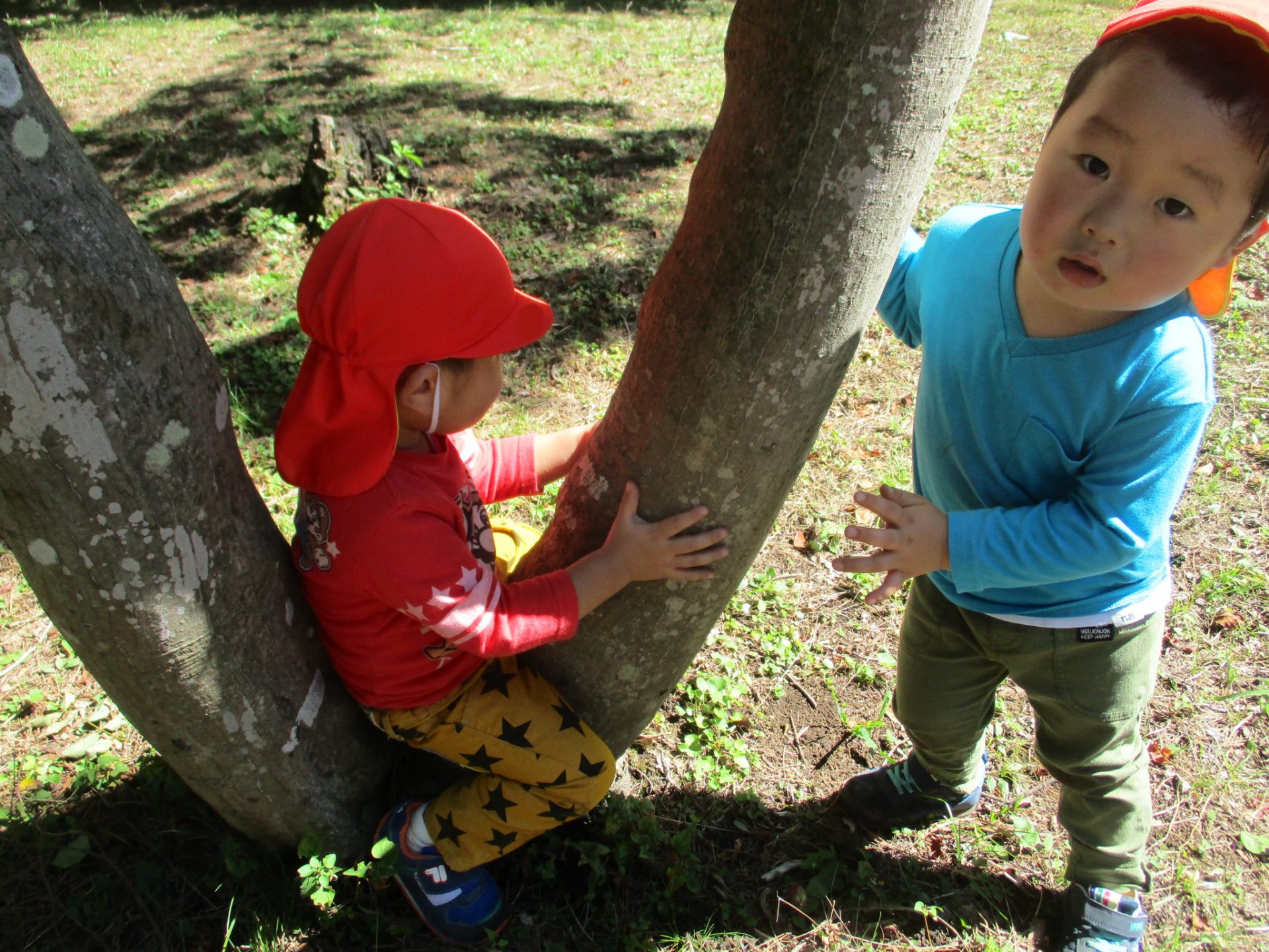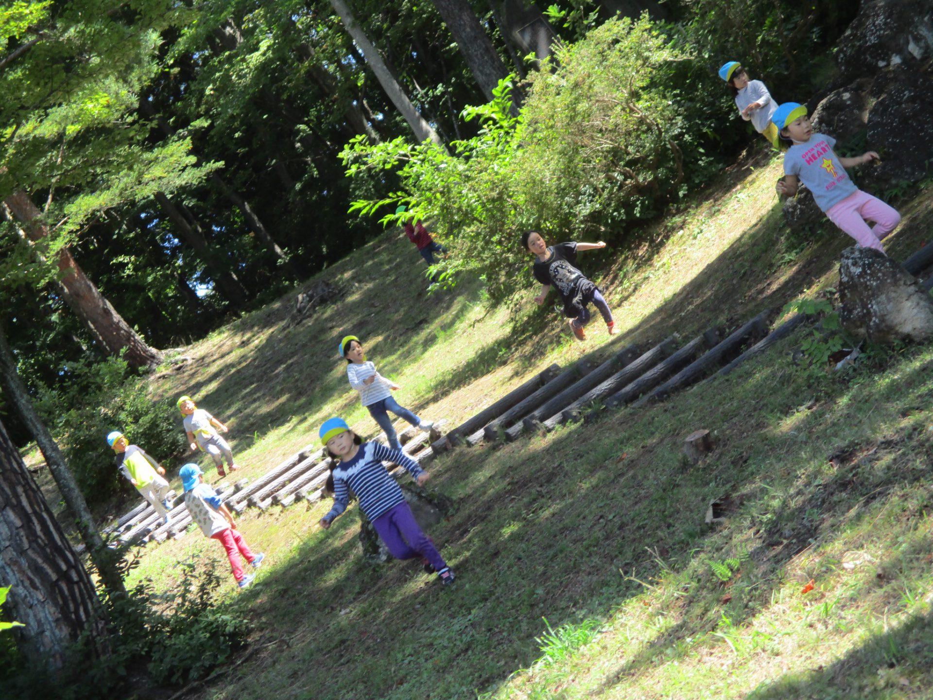 登る、ジャンプする、ゆっくり降りる、走る、いろいろな動作を年齢に応じて楽しむ姿は見ていて嬉しくなりました。同時に、体を動かすのに最適なこの季節を、子ども達の興味が向いている今、伸ばしていけるように環境を整えていきたいと思います。
