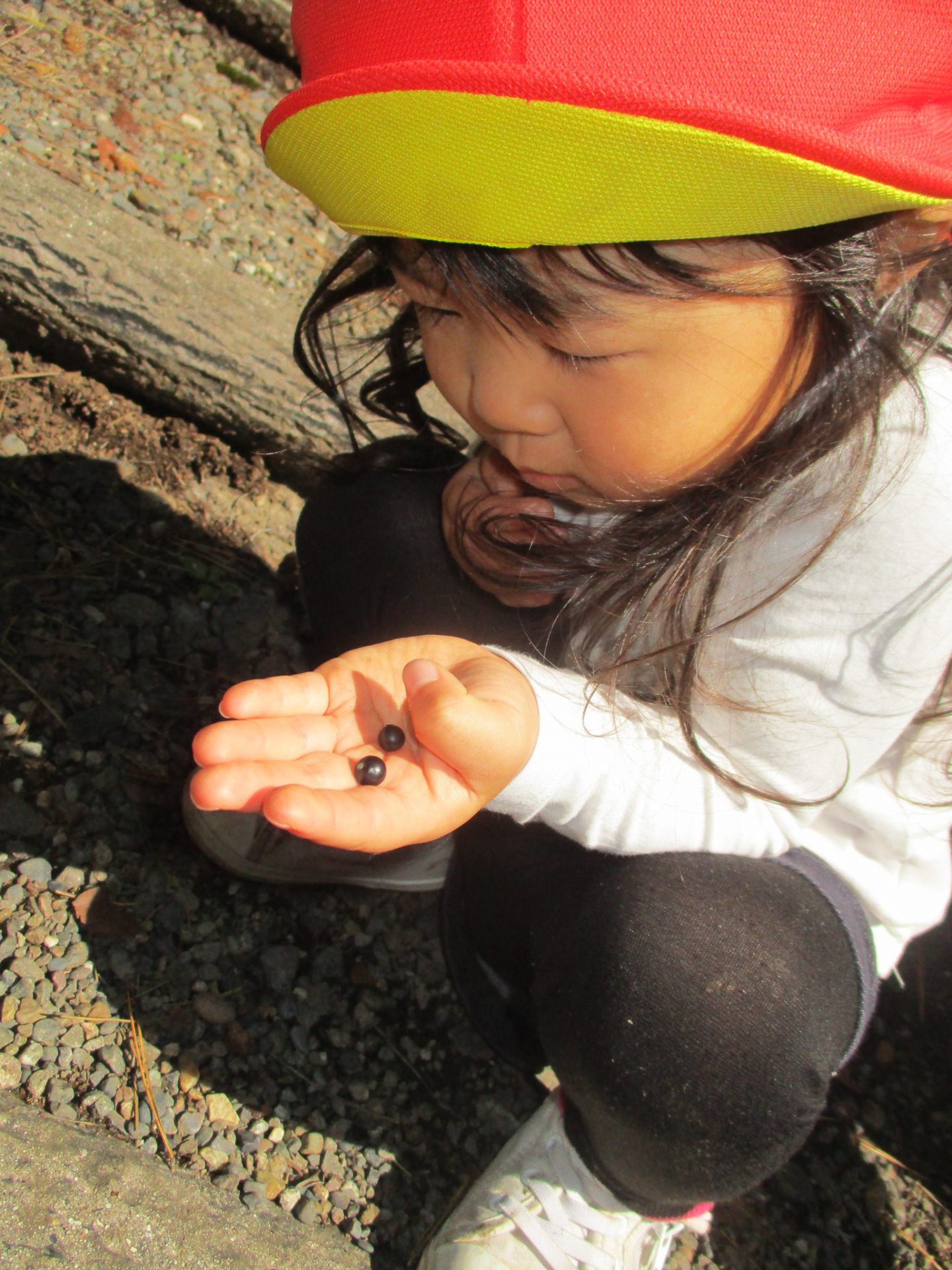 「ブルーベリーみつけた。」さすが信濃町っ子。黒い実はブルーベリーに見えるようです。