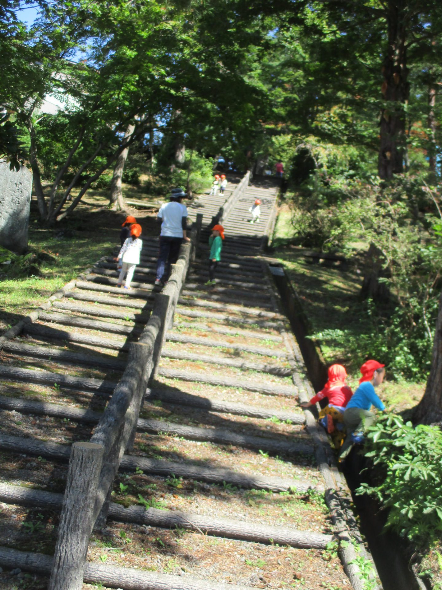 運動会を終えて体を動かす心地よさ、そしてできるようになった達成感を味わった子ども達にとってこの階段と坂道はもってこいの遊び場でした。