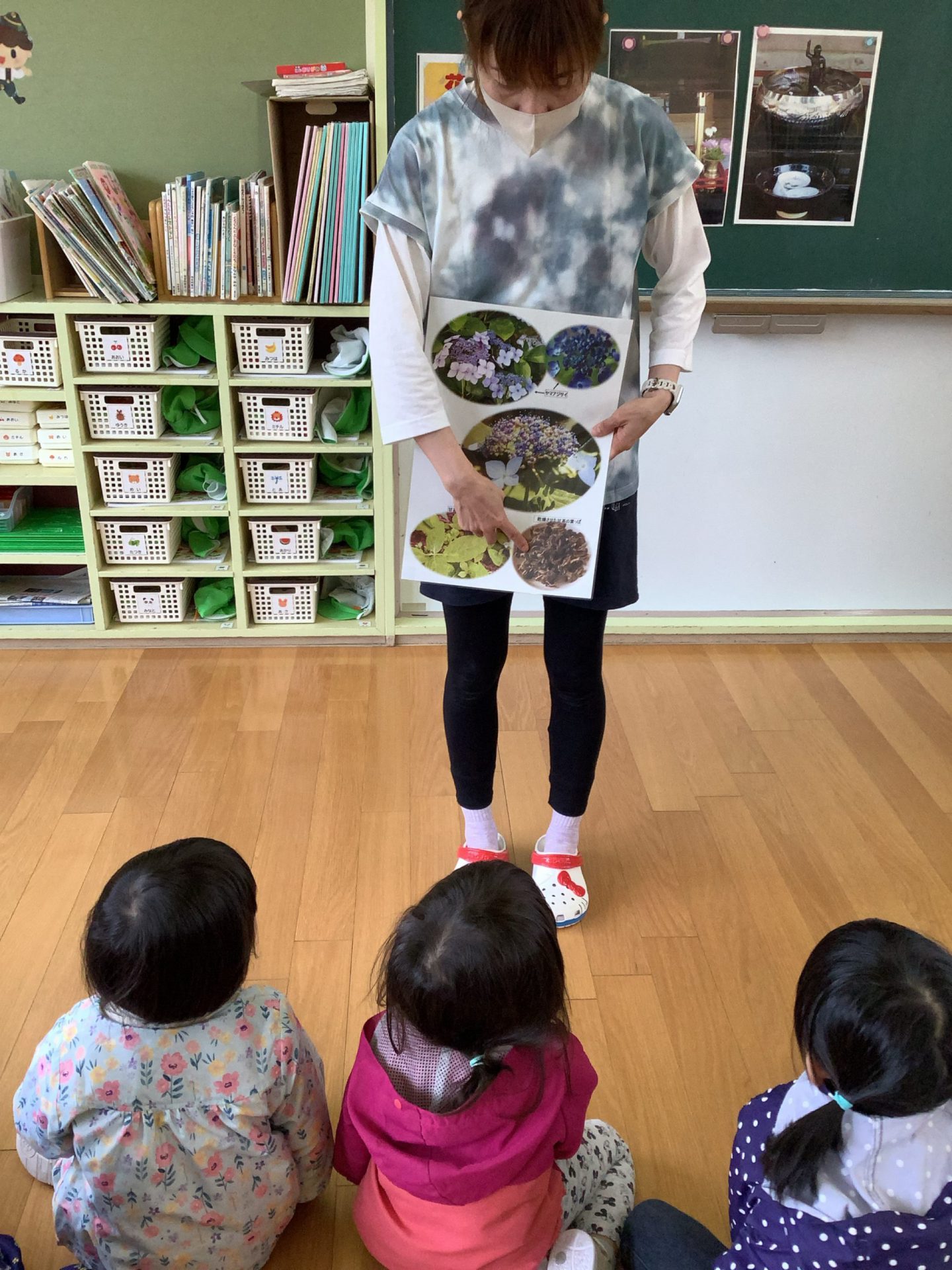 部屋で[お花まつりって何?!] [お釈迦さまってどんな人?!] [甘茶って何?!] というお話を聞きました。