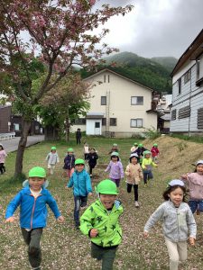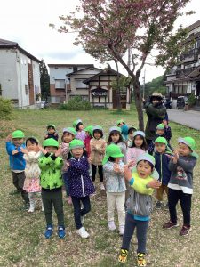 子ども園のみんなが好きな散歩先の一つ、ぞうさん公園。残念ながらぞうさんの滑り台が設置されておらずガッカリしていた子ども達でしたが、すぐに公園内を走って楽しんでいました。