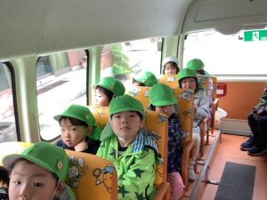 あら、霧雨が・・・急遽、園バスを出してもらいました。