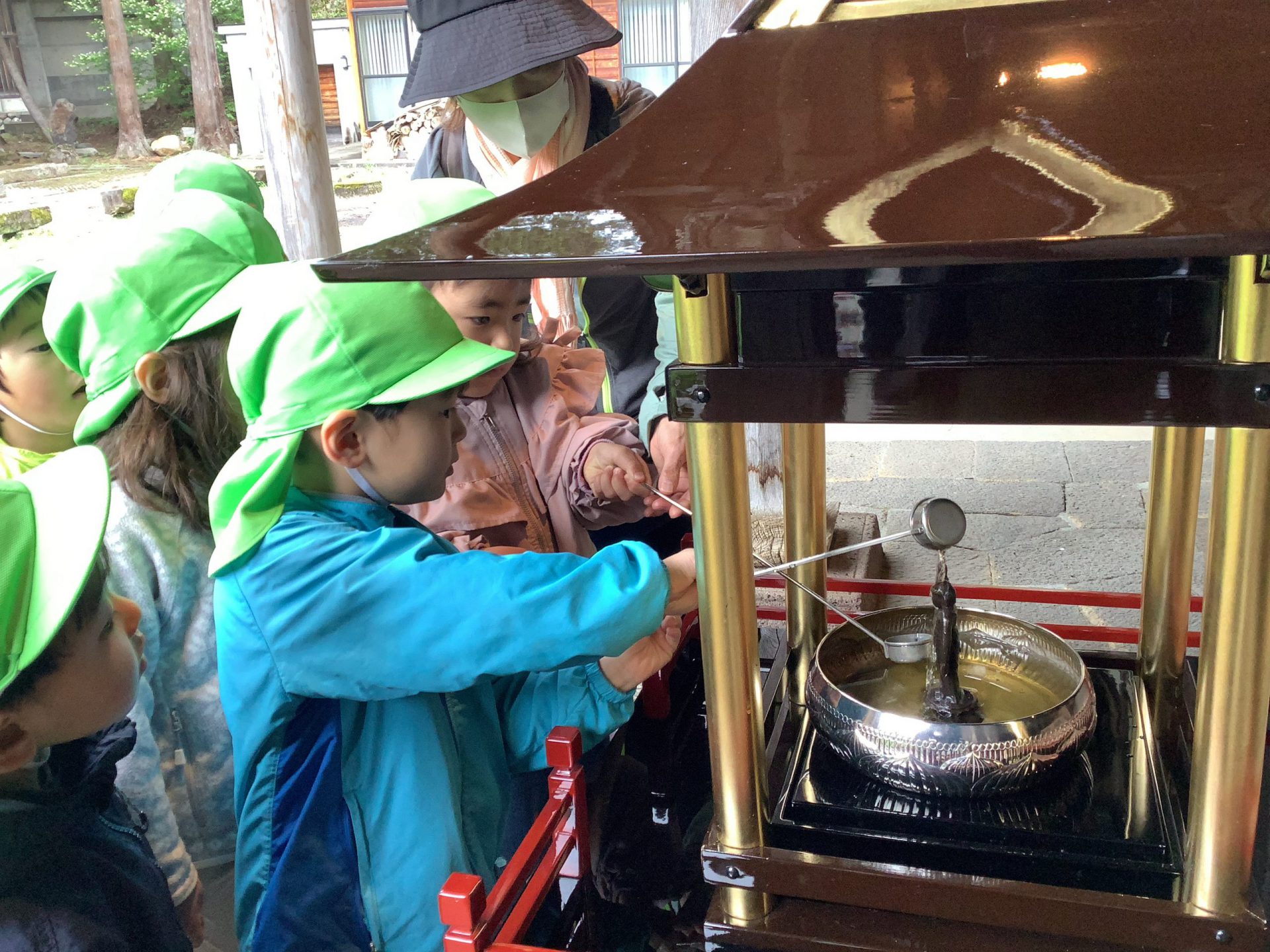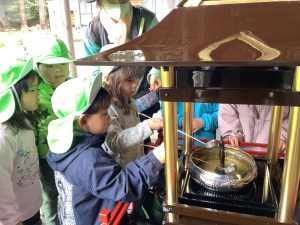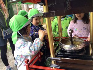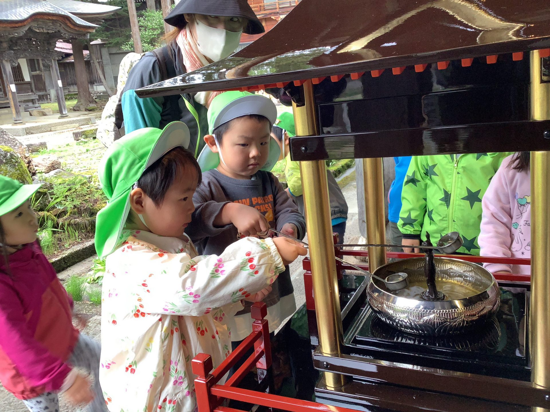 「お釈迦さま お誕生日おめでとう」と言いながら、順番に小さい柄杓で甘茶をかけていきました。