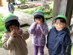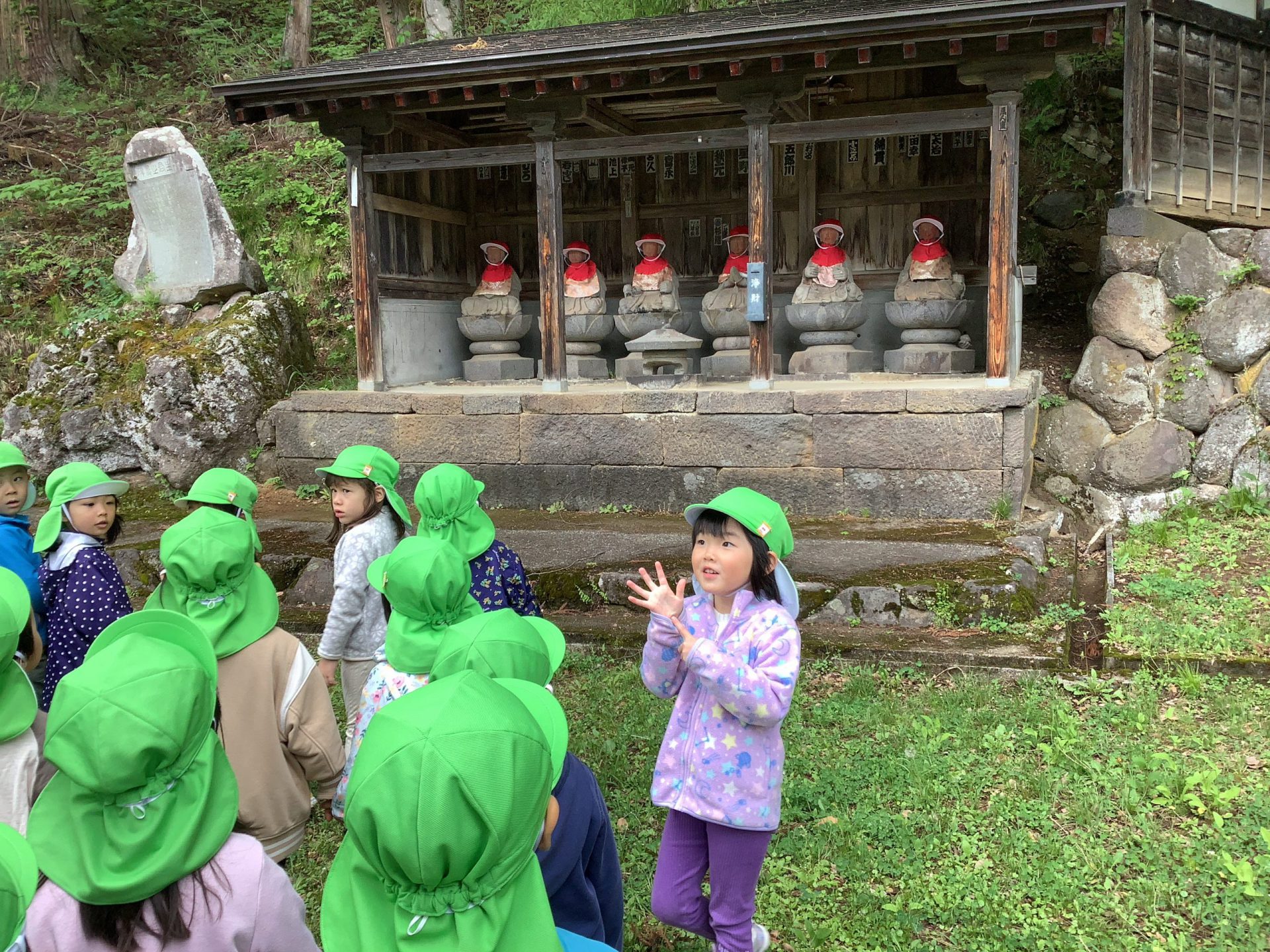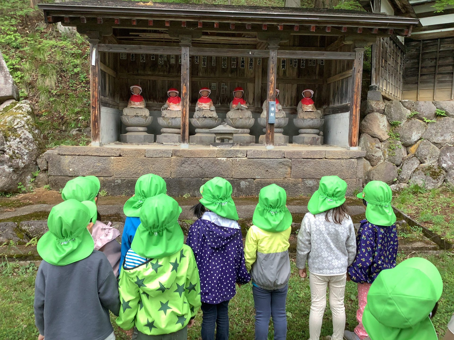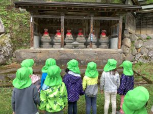 お地蔵さん何人かなぁ。「1.2.3~」とみんなで数えて「あっ!6人だ」と、まるでお地蔵さまも子ども達のお友達(笑)