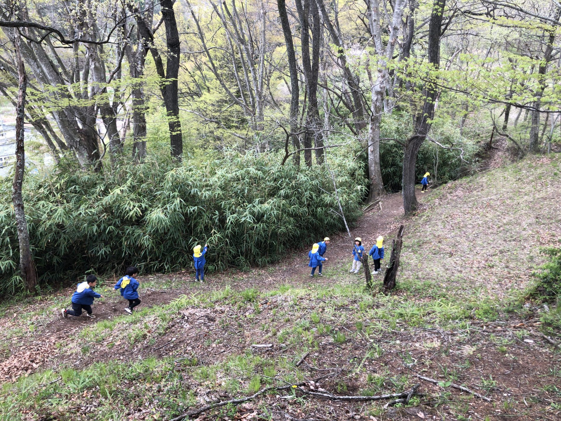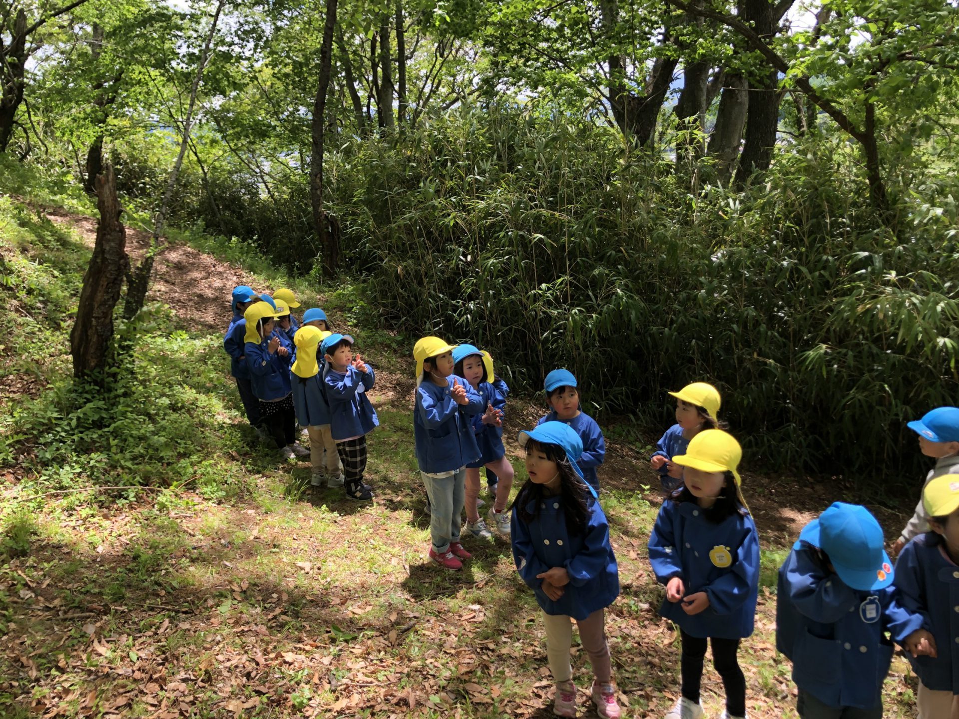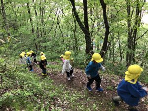 まずは、黄忍(年長児)たちが今年度初の城山へ!山登りも慣れたもの!軽い足取りで、どんどん登っていきます。