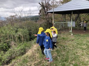 見晴し台からは保育園が見えます。「ヤッホー!!」