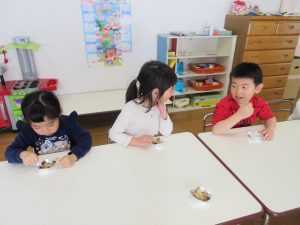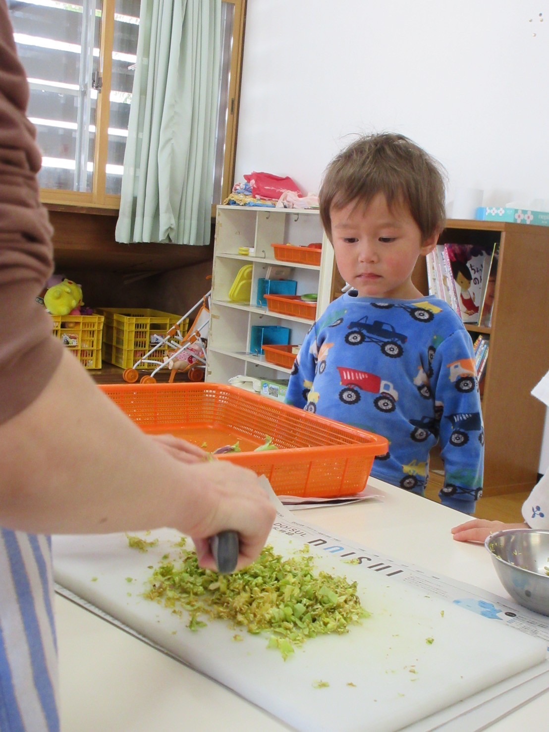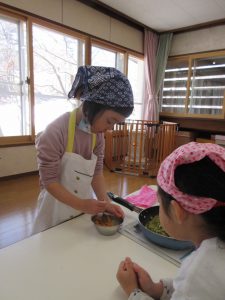 自分たちで収穫した “ふきのとう″ 春の味は、子ども達にはまだ難しい “大人の味″ だったみたいです。