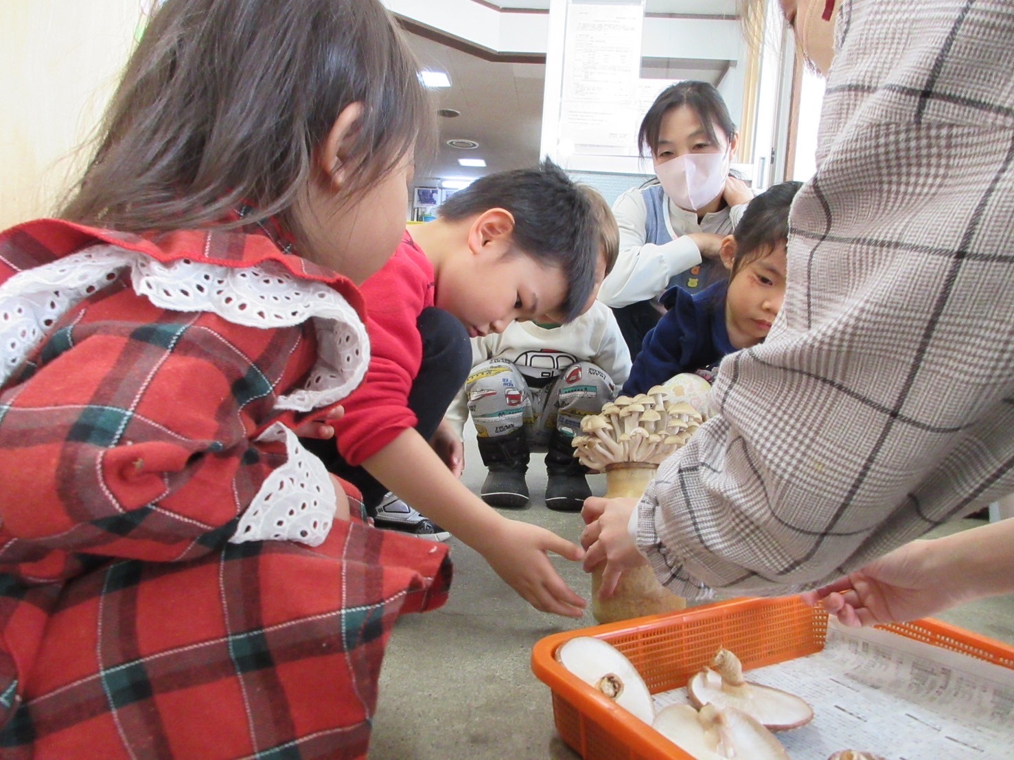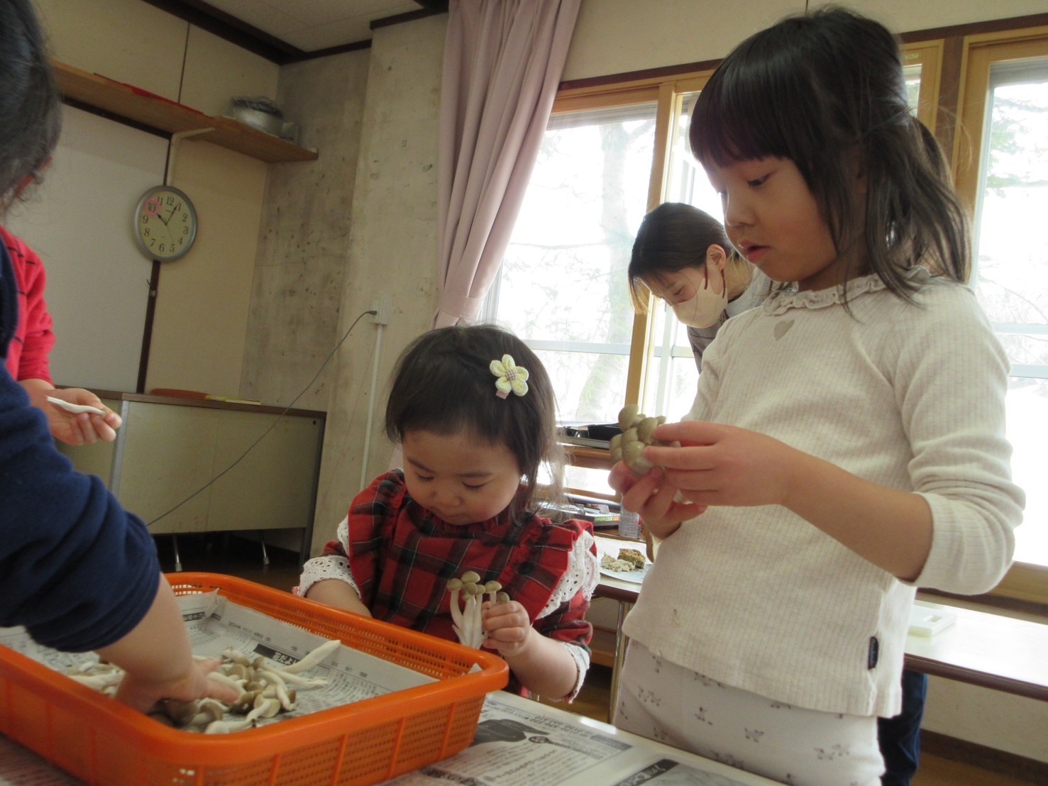 頂いたシメジの収穫も体験し、一緒にお料理して食べてみました。
