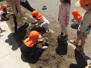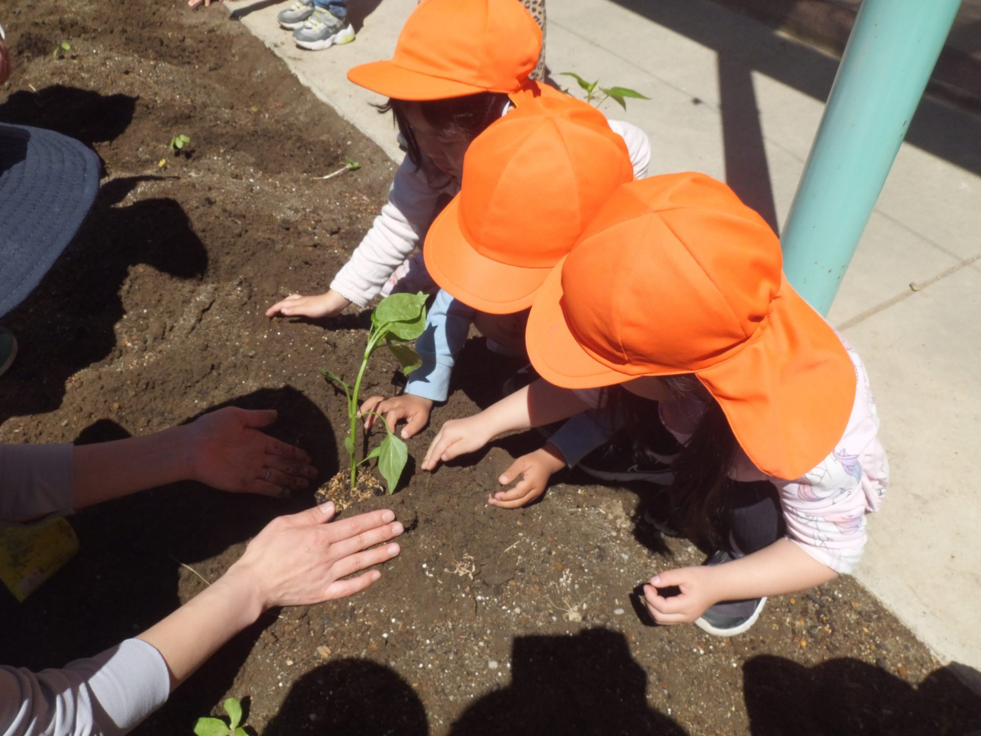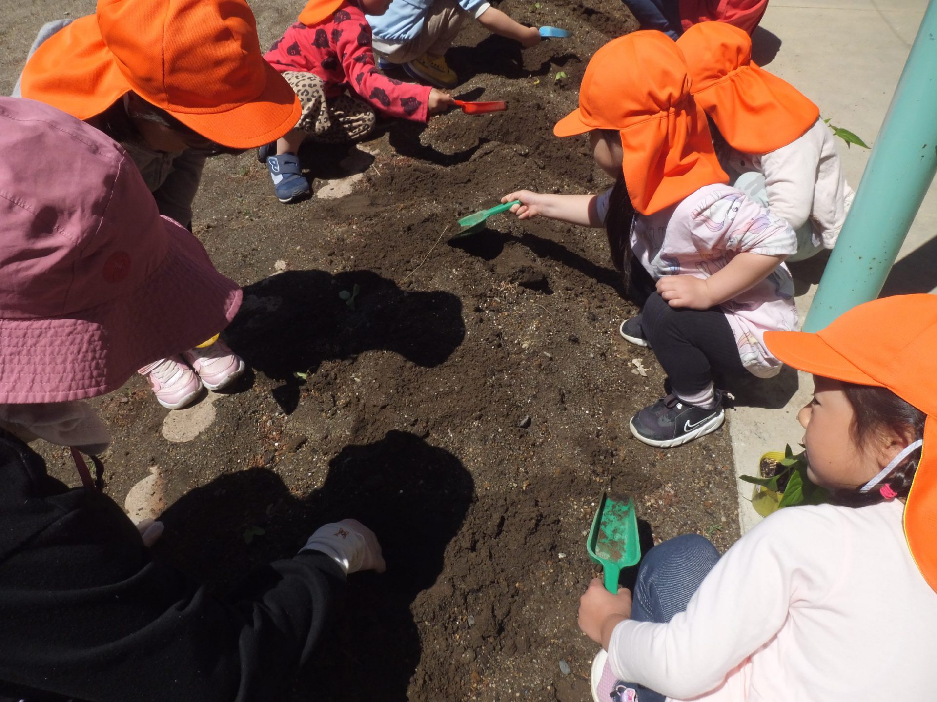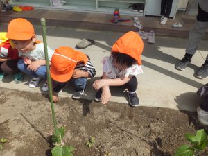 年少さんは、きゅうりとパプリカを植えるんですって。