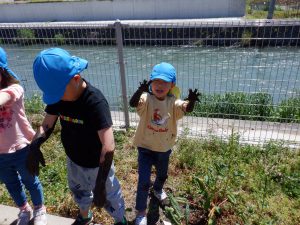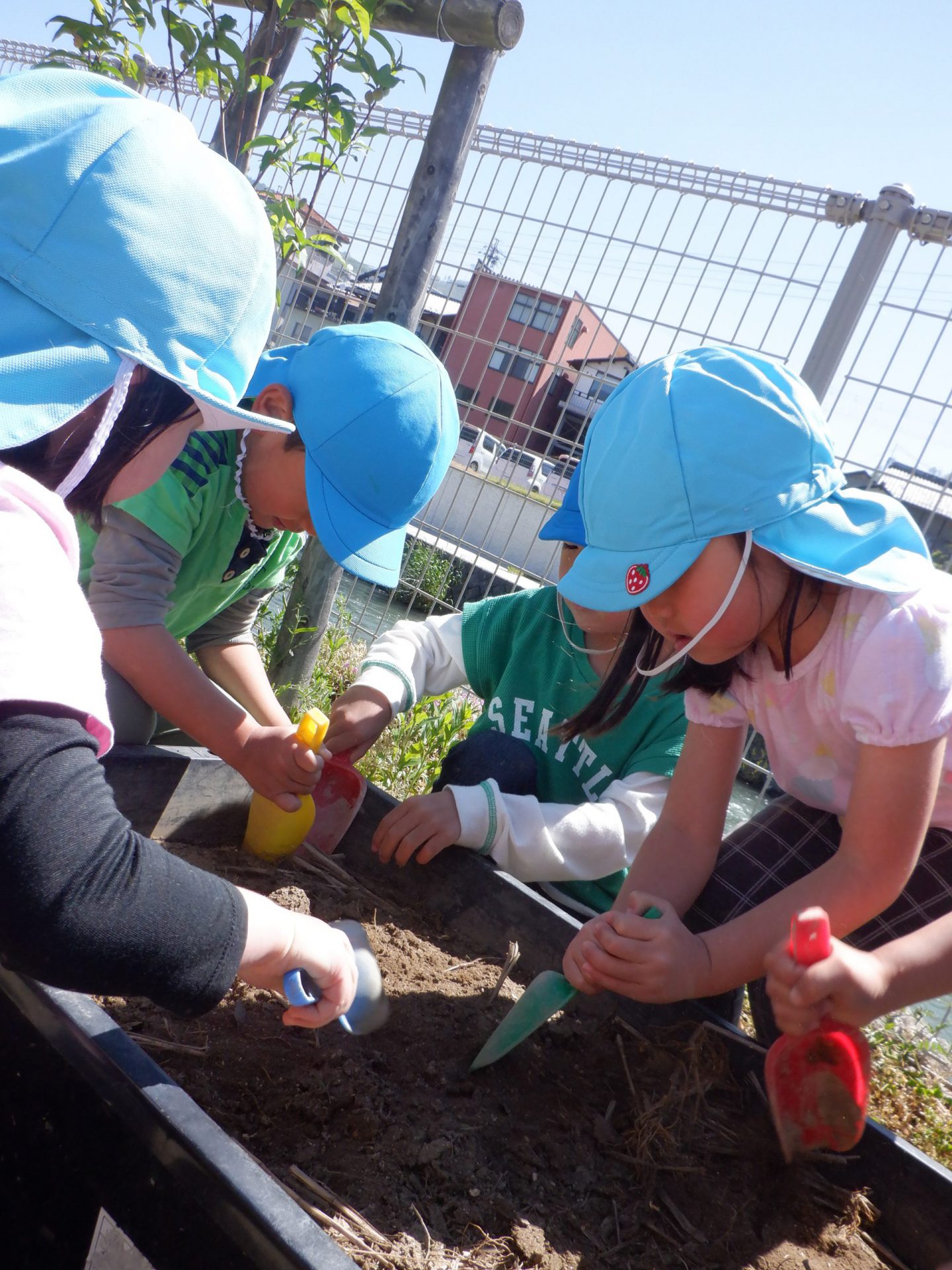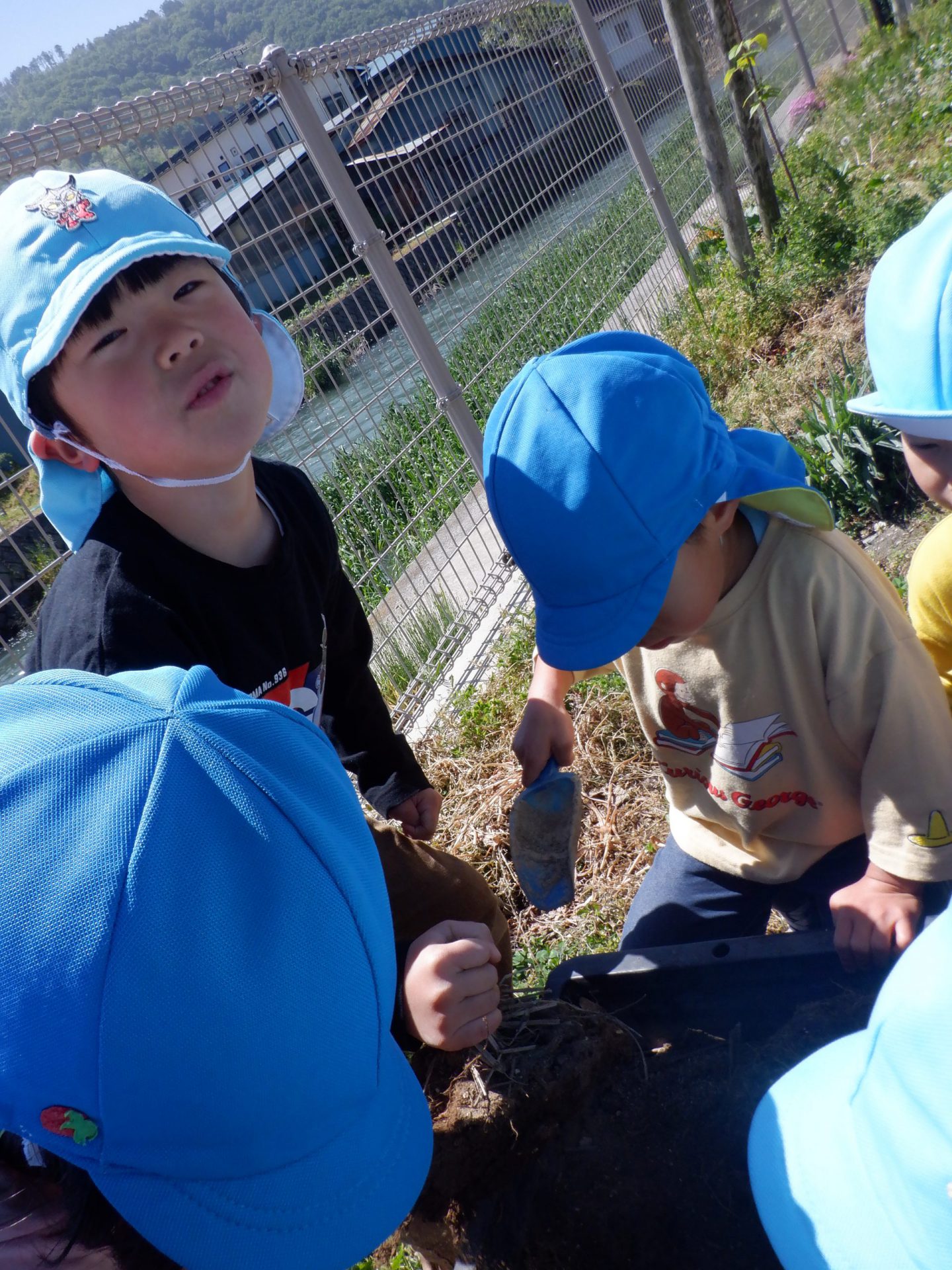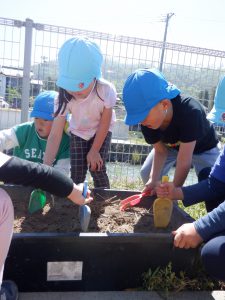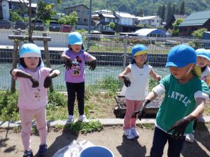 昨年の年長さんの姿を思い出し、今年もお米作りたい!!とプチ田んぼ作りの準備が始まりました。